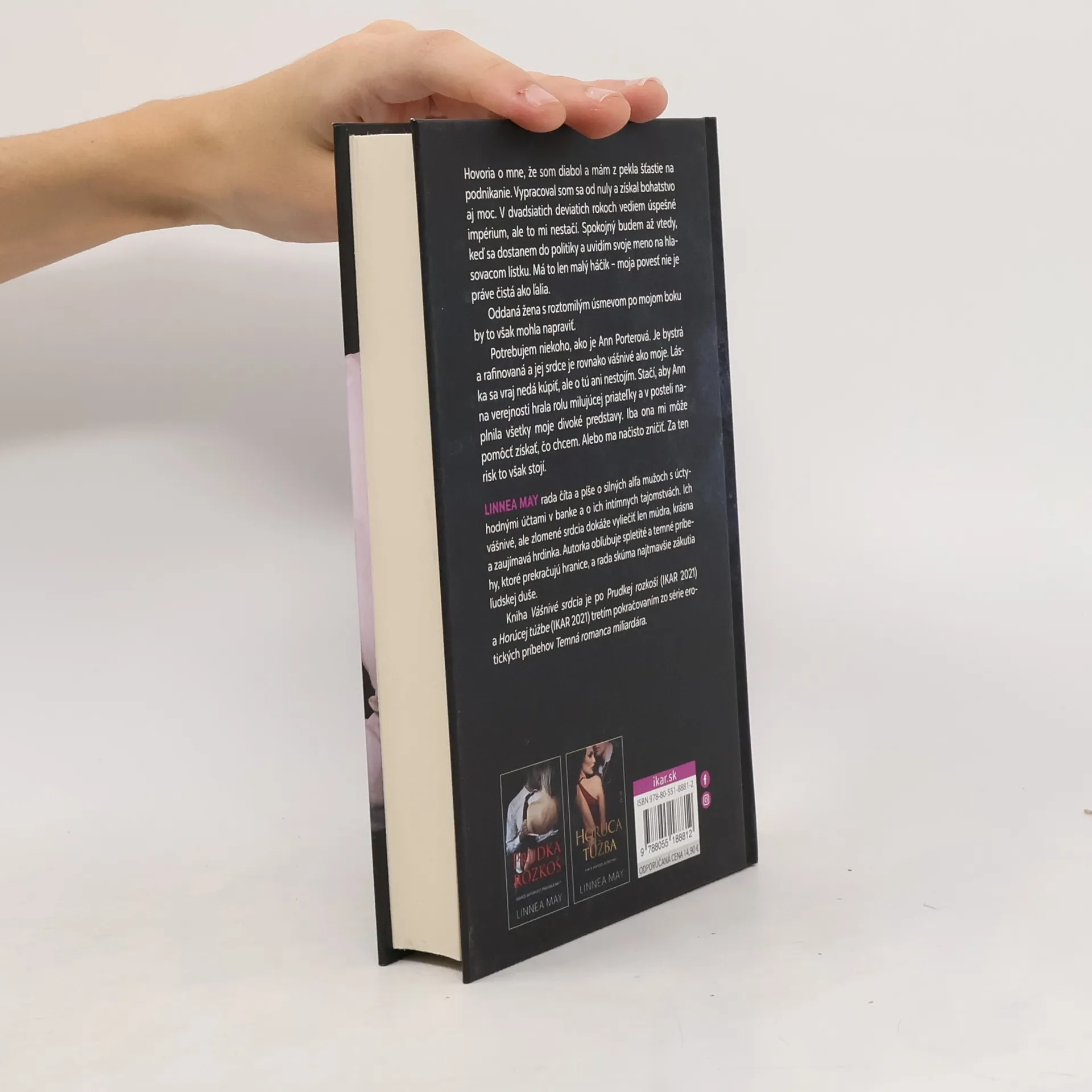 Ako chutí zmluva s diablom?Hovoria o mne, že som diabol a mám z pekla šťastie na podnikanie. Vypracoval som sa od nuly a získal bohatstvo aj moc. V dvadsiatich deviatich rokoch vediem úspešné impérium, ale to mi nestačí. Spokojný budem až vtedy, keď sa dostanem do politiky, a uvidím svoje meno na hlasovacom lístku. Má to len malý háčik – moja povesť nie je práve čistá ako ľalia.Oddaná žena s roztomilým úsmevom po mojom boku by to však mohla napraviť.Potrebujem niekoho, ako je Ann Porterová. Je bystrá a rafinovaná a jej srdce je rovnako vášnivé ako moje. Láska sa vraj nedá kúpiť, ale o tú ani nestojím. Stačí, aby Ann na verejnosti hrala rolu mojej milujúcej priateľky a v posteli naplnila všetky moje divoké predstavy. Iba ona mi môže pomôcť získať, čo chcem. Alebo ma načisto potopiť. Za ten risk to však stojí.