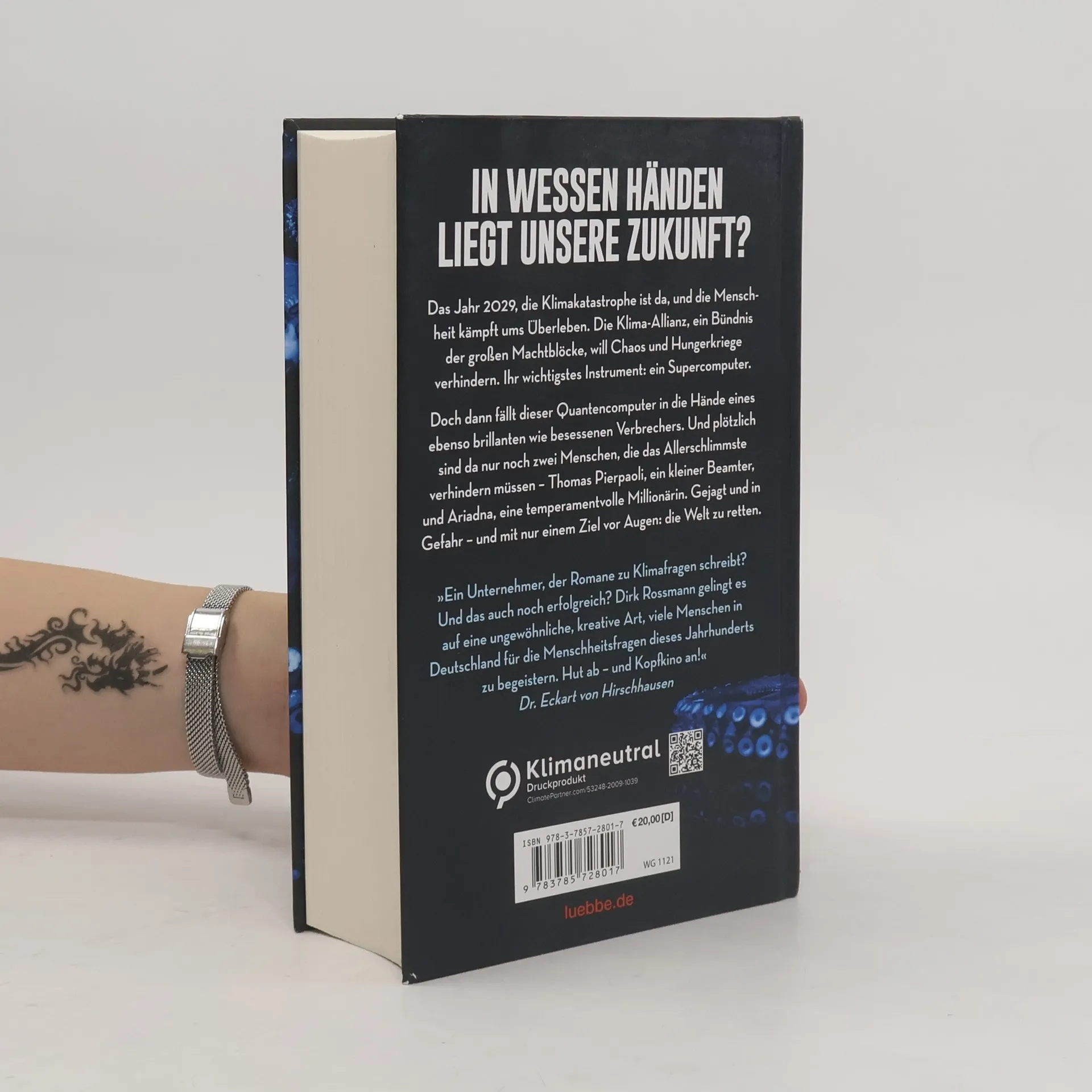 In wessen Händen liegt unsere Zukunft? Das Jahr 2029, die Klimakatastrophe ist da, und die Menschheit kämpft ums Überleben. Die Klima-Allianz, ein Bündnis der großen Machtblöcke, will Chaos und Hungerkriege verhindern. Ihr wichtigstes Instrument: ein Supercomputer. Doch dann fällt dieser Quantencomputer in die Hände eines ebenso brillanten wie besessenen Verbrechers. Und plötzlich sind da nur noch zwei Menschen, die das Allerschlimmste verhindern müssen - Thomas Pierpaoli, ein kleiner Beamter, und Ariadna, eine temperamentvolle Millionärin. Gejagt und in Gefahr - und mit nur einem Ziel vor Augen: die Welt zu retten.