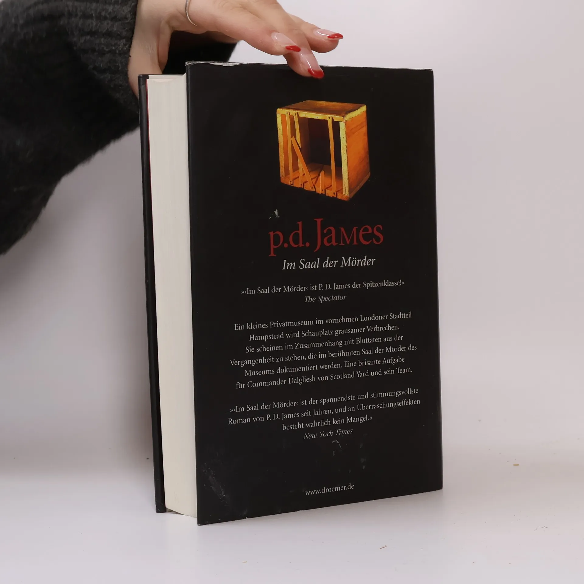 Ein kleines Privatmuseum im vornehmen Londoner Stadtteil Hampstead wird Schauplatz grausamer Verbrechen. Sie scheinen im Zusammenhang mit Bluttaten aus der Vergangenheit zu stehen, die im berühmten »Saal der Mörder« des Museums dokumentiert werden ... Drei Geschwister sollen über den Fortbestand des von ihrem Vater gegründeten Museums abstimmen. Eine Einigung ist nicht in Sicht, und nach der entscheidenden Sitzung verbrennt der Bruder, der für die Schließung votierte, in seinem Jaguar. Scotland Yard schickt Commander Dalgliesh, der eigentlich mit der Dozentin Emma Lavenham aus Cambridge verabredet war. Obwohl sie Dalgliesh’ Zuneigung erwidert, lässt sie sich nur ungern vertrösten. Wichtigster Zeuge ist Tally Clutton, der gute Geist des Museums, eine rechtschaffene, resolute, äußerst liebenswerte alte Dame, die ein Cottage in der Nachbarschaft bewohnt. Während allen noch der Schreck über einen plötzlichen zweiten Mord im Museum in den Knochen sitzt, streckt der unbekannte Täter seine Finger bereits nach Tally Clutton aus …