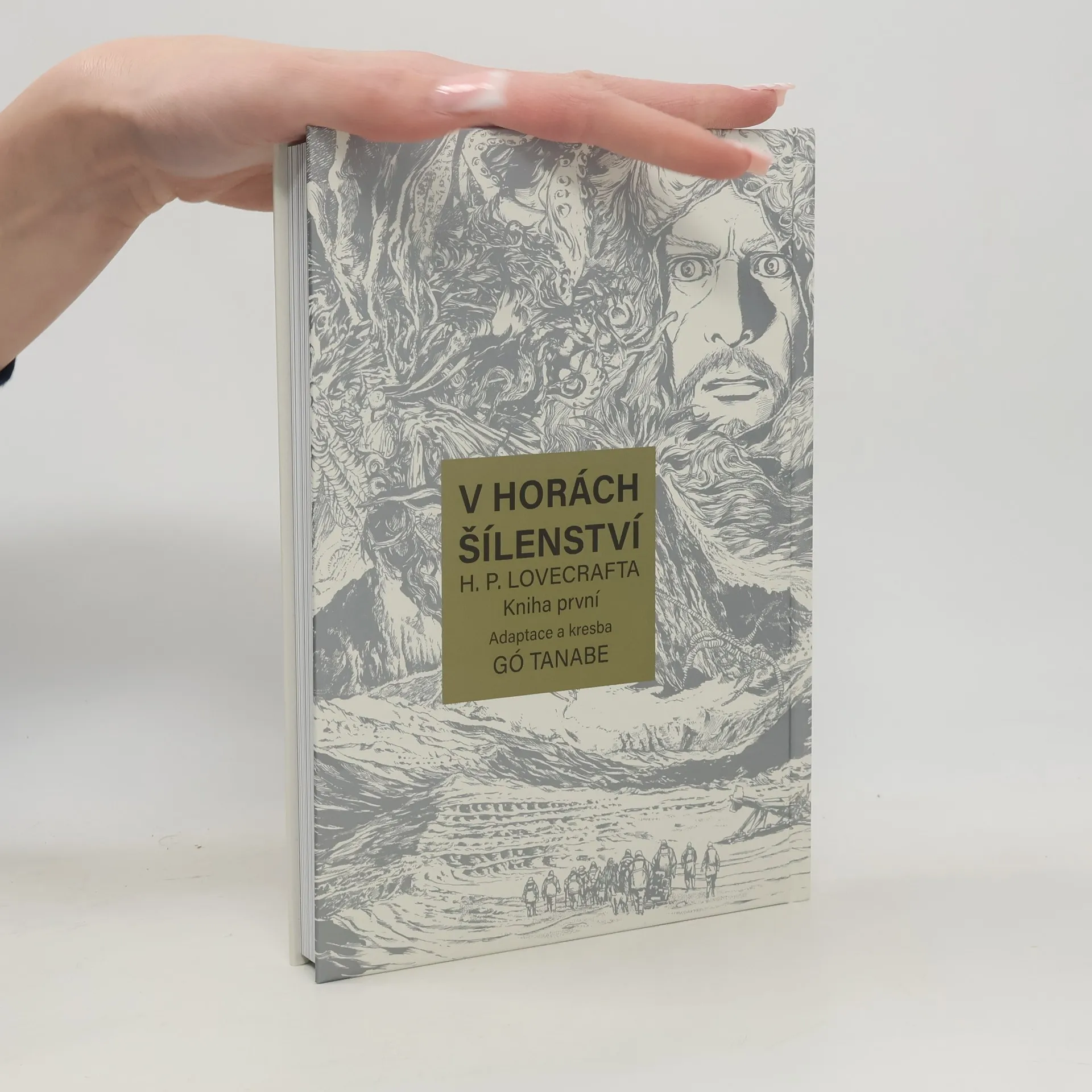 25. ledna 1931: expediční tým dorazí do tábořiště v Antarktidě... kde najde tamní posádku mužů a tažných psů mrtvou. Těla jsou rozházena všude kolem, některá jsou zohavena, jiná podivným a chladnokrevným způsobem rozčtvrcena. Několik lidí je nezvěstných. Ještě děsivější pohled se však naskýtá na hvězdicovitou hromadu sněhu poblíž. Pod jejími pěti cípy se totiž nachází hrob – a to, co v něm leží, není člověk! Román V horách šílenství je cestou do nitra Lovecraftova mýtu – do hlubokých jeskyní a ještě hlubších propastí času na nehostinném kontinentu, kde je uchována tajná historie naší planety. Od svého prvního vydání v dnes již kultovním časopise pulpové éry Astounding Stories ovlivnil tento příběh rozvoj hororu i science fiction po celém světě. Japonský scenárista a kreslíř Gó Tanabe jej věrně a s velkou úctou k předloze adaptoval do podoby mangy, jejíž první polovinu najdete v této knize a jež svou kresbou a celkovým stylem připomíná spíše západní komiks, a může proto také dobře posloužit jako „vstupní brána“ pro ty, kteří se s japonským komiksem teprve seznamují.