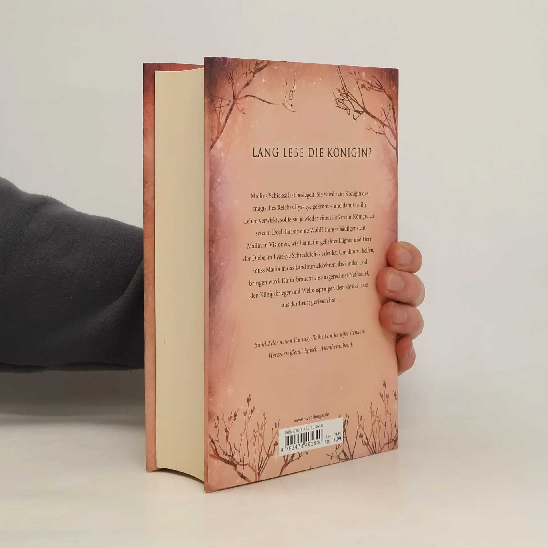 Mailins Schicksal ist besiegelt: Sie wurde zur Königin von Lyaskye gekrönt und kann nie wieder in ihr Königreich zurückkehren. Doch genau das ist ihr Ziel, denn ihr Herz gehört Liam. Um zu ihm zurückzukehren, benötigt sie Nathaniel, den Königskrieger und Weltenspringer, dem sie das Herz gebrochen hat. Diese Geschichte ist der zweite Band einer High-Romantasy-Reihe von Jennifer Benkau und bietet eine herzzerreißende, epische und atemberaubende Erzählung. Benkaus Romantasy-Reihen „One True Queen“, „Das Reich der Schatten“ und „The Lost Crown“ spielen in derselben Fantasy-Welt und können unabhängig voneinander gelesen werden. Die Reihenfolge der Veröffentlichungen ist wie folgt: - One True Queen, Band 1: Von Sternen gekrönt - One True Queen, Band 2: Aus Schatten geschmiedet - Das Reich der Schatten, Band 1: Her Wish So Dark - Das Reich der Schatten, Band 2: His Curse So Wild - The Lost Crown, Band 1: Wer die Nacht malt - The Lost Crown, Band 2: Wer das Schicksal zeichnet Zusätzlich hat Jennifer Benkau New-Adult-Romance-Romane veröffentlicht, darunter „A Reason To Stay“ und „A Reason To Hope“ aus der Liverpool-Reihe.