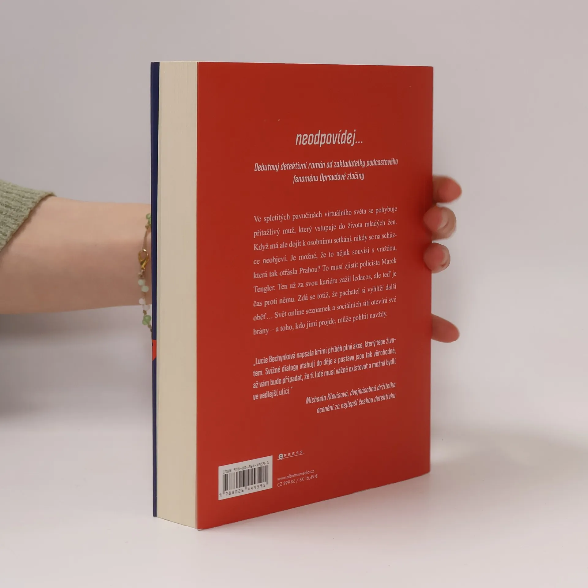 Debutový detektivní román od zakladatelky podcastového fenoménu Opravdové zločiny Ve spletitých pavučinách virtuálního světa se pohybuje přitažlivý muž, který vstupuje do života mladých žen. Když má ale dojít k osobnímu setkání, nikdy se na schůzce neobjeví. Je možné, že to nějak souvisí s vraždou, která tak otřásla Prahou? To musí zjistit policista Marek Tengler. Ten už za svou kariéru zažil ledacos, ale teď je čas proti němu. Zdá se totiž, že pachatel si vyhlíží další oběť Svět online seznamek a sociálních sítí otevírá své brány – a toho, kdo jimi projde, může pohltit navždy.