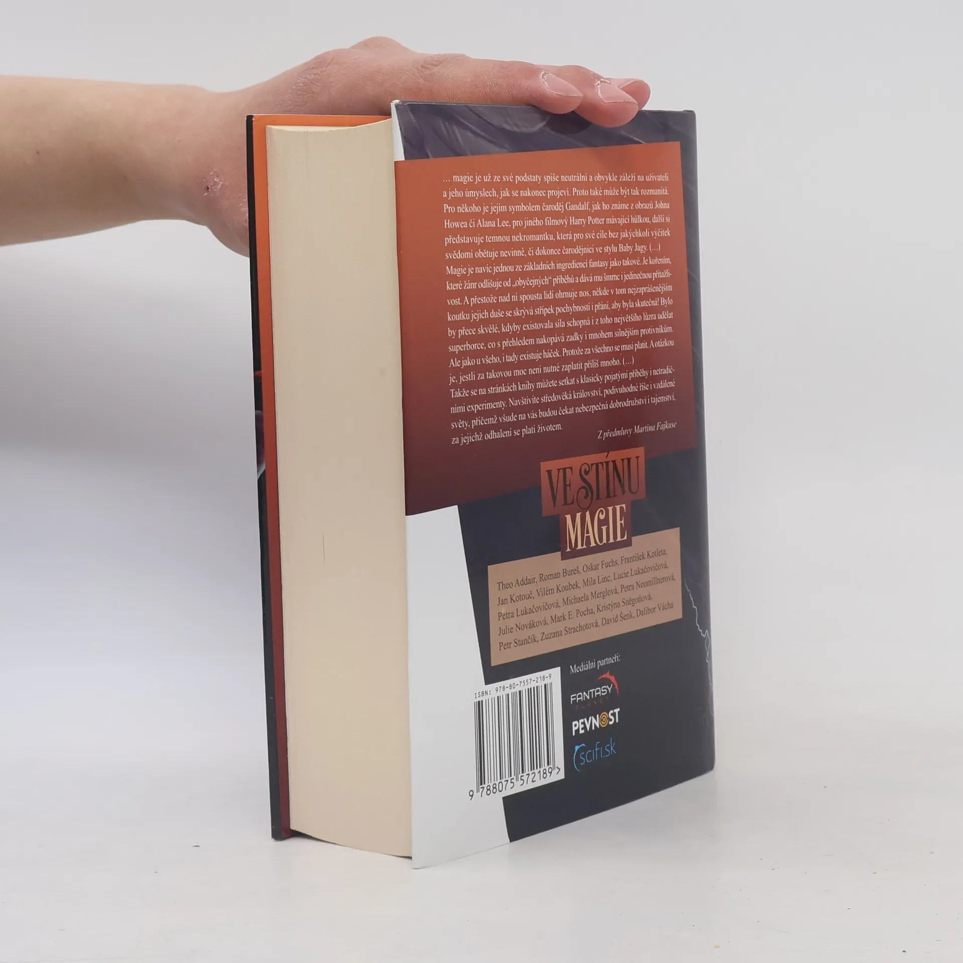 Magie je bezvadná věc. Můžete si přičarovat štěstí, zdraví nebo sukubu, která vám bude po vůli. Ale taky se může všechno v jednom okamžiku zvrhnout a vy proti sobě poštvete síly, které jsou tak staré a temné, že vás mohou přivést k šílenství. Magie tvoří základ fantasy kánonu, ale tahle sbírka vám ukáže, že i tak tradiční téma vás v mnohém dokáže ještě zatraceně překvapit. Antologie dua Hokr – Kyša si prorazily cestu k tisícům čtenářů a ukázaly jim kouzlo české fantastiky. Ve stínu magie jejich představení nové generace českých autorů završuje a vy prostě chcete být u toho. Lákadlem rozsáhlého povídkového souboru jsou nová nadějná literární jména, která s autoritou a zdravým sebevědomím usedají na trůn současné literární fantastiky vedle již etablovaných slavných kolegů. Originální příběhy o rozpolcenosti užívání magie, která na jedné straně sice dává, ale hned také druhou rukou vybírá svou zhusta krutou daň, jsou doplněny medailonky autorů a jejich úvodním slovem k příběhům.