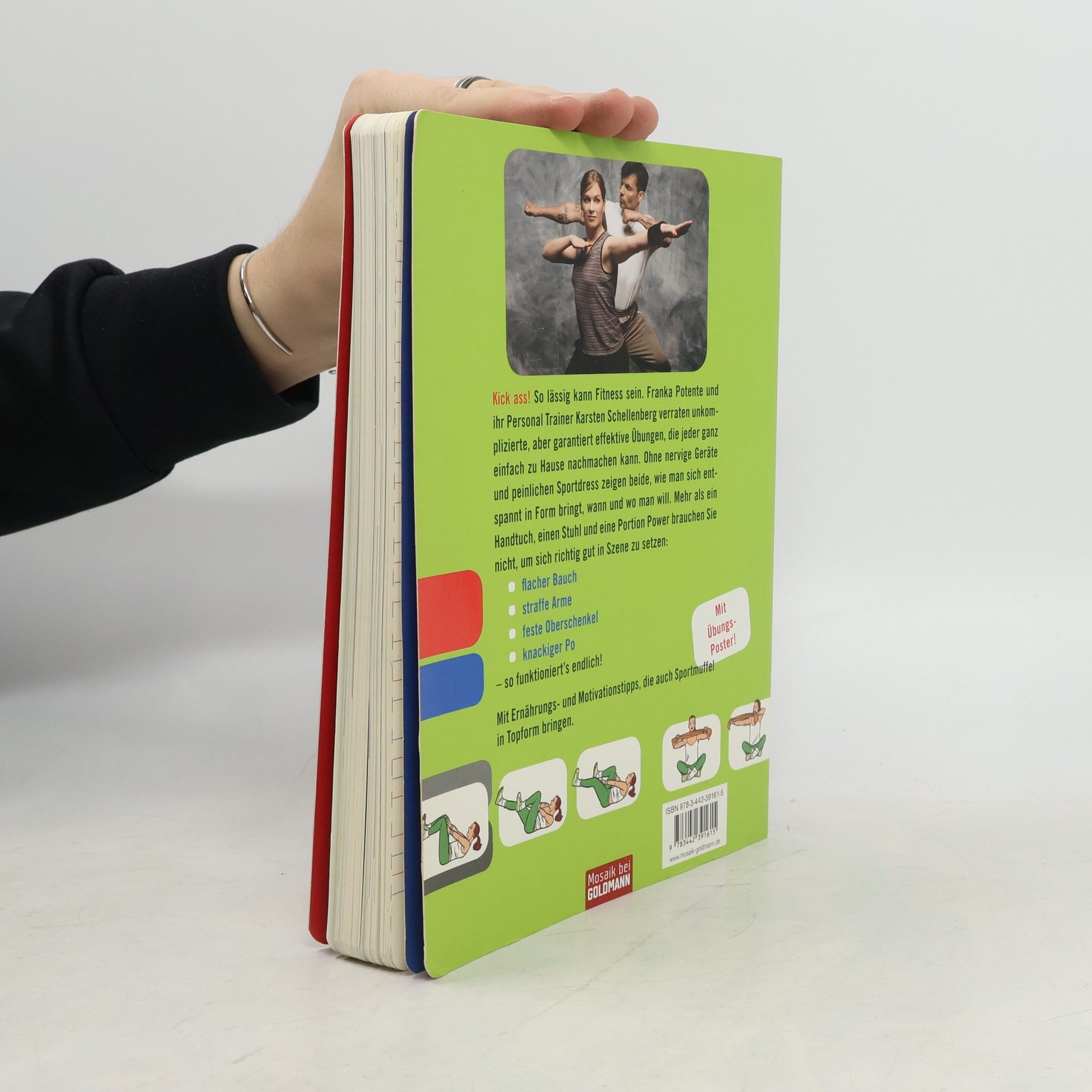 Franka Potente und Karsten Schellenberg: Das Power-Duo! „Ich bin nicht besonders diszipliniert, was Sport angeht. Leider. Zumindest nicht immer.“Wie schafft Franka es dennoch, schlank und fit zu bleiben? Die Schauspielerin und der Personal Trainer Karsten Schellenberg zeigen in ihrem Buch einfache, unkomplizierte Übungen, für die höchstens mal ein Handtuch oder ein Stuhl benötigt wird; man muss nirgendwo extra hingehen, muss sich nicht aufwändig verkleiden, kosten tut’s auch nix. Außerdem wird erklärt, wie man sich mit unkomplizierter Kost gesund und kalorienarm ernähren kann. • Franka Potente – Weltstar seit „Lola rennt“ • Lässig einfache aber effektive Übungen • Trend Body-Gym: Training an jedem Ort und ohne Geräte • Fotos von Starfotograf Jim Rakete