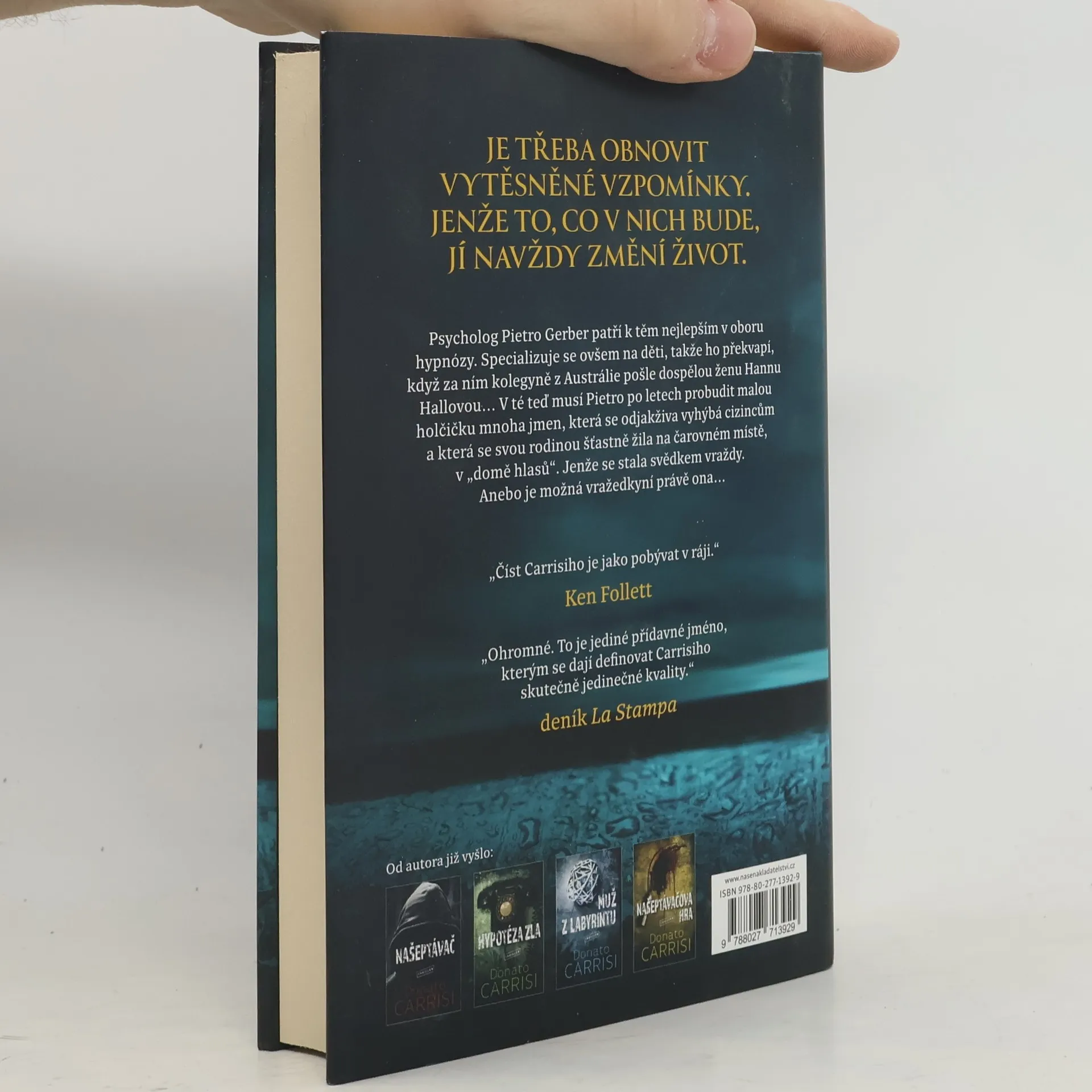 Pietro Gerber není jen tak ledajaký psycholog. Specializuje se na hypnózu a jeho pacienty spojuje jedna věc: jsou to děti. Často jsou traumatizované, poznamenané dramatickými událostmi nebo mají hluboko v paměti ukryté důležité informace, které policie a soudci využívají při vyšetřování. Pietro je nejlepší v celé Florencii, kde je známý jako uspávač dětí. Ale když mu z druhého konce světa zavolá australská kolegyně, aby mu svěřila do péče svoji pacientku, Pietro zareaguje rozpačitě a s nedůvěrou. Protože Hanna Hallová je dospělá. Hannu trápí jedna živá vzpomínka, která by však nemusela být skutečná: vzpomínka na vraždu. A aby zjistila, jestli je ten střípek paměti pravda, nebo iluze, zoufale potřebuje Pietra Gerbera. Dnes je Hanna sice dospělá, ale ta vzpomínka sahá do jejího dětství. A tak jí Pietro bude muset pomoct probudit tu malou holčičku, která v ní dosud dřímá. Holčičku mnoha jmen, která se odjakživa vyhýbá cizincům a která se svou rodinou šťastně žila na čarovném místě, v „domě hlasů“. Ta holčička se stala svědkem vraždy. Anebo možná nebyla jen svědkem. Možná je vražedkyní právě ona.