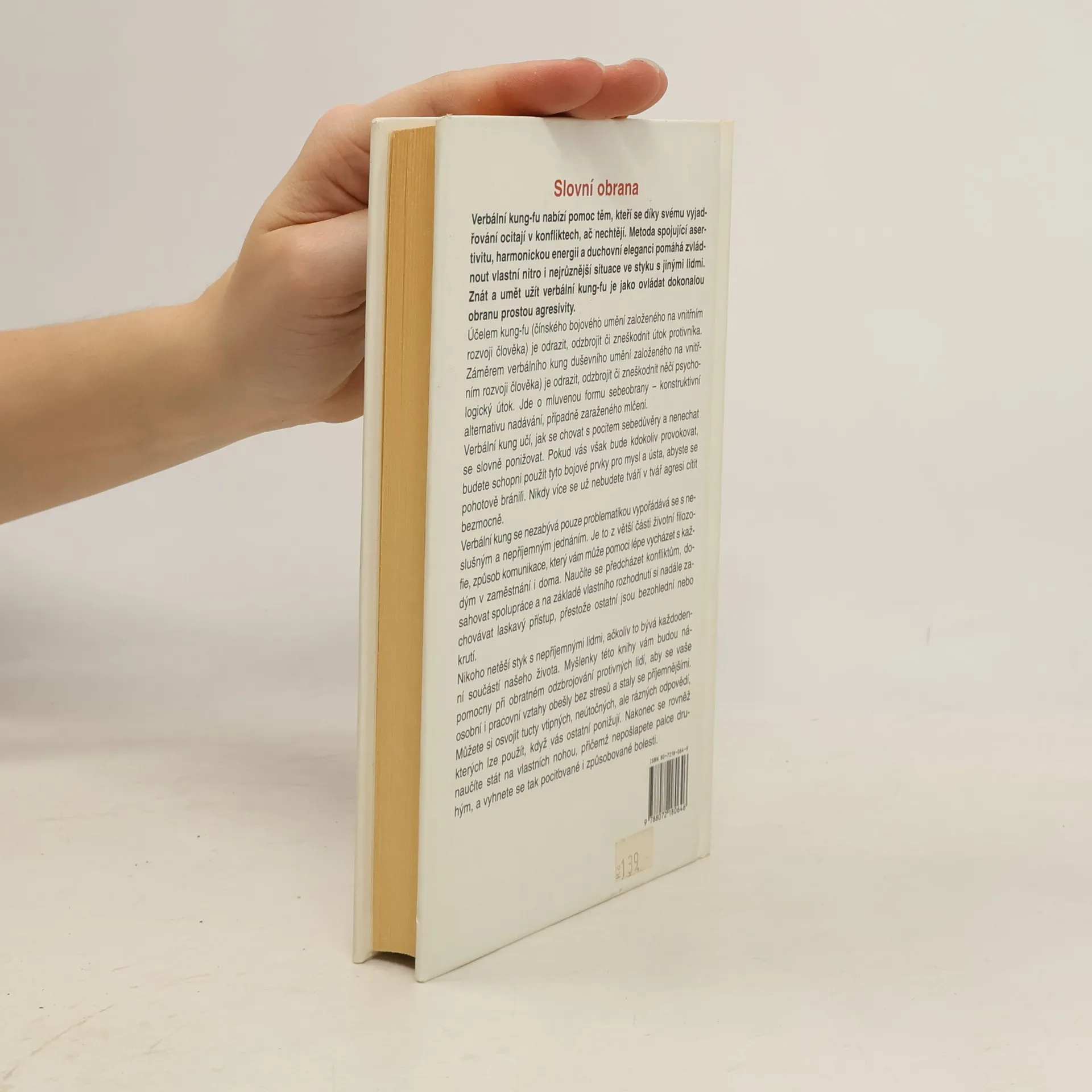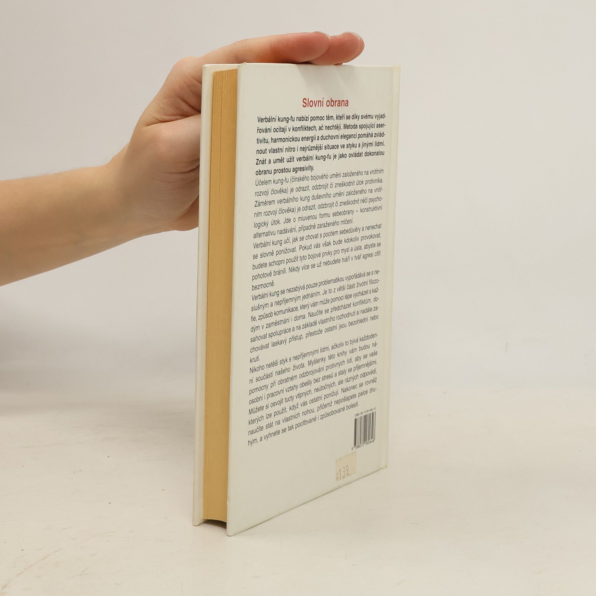 Slovní obrana. Kniha nabízí pomoc těm, kteří se díky svému vyjadřování ocitají v konfliktech, ač nechtějí. Metoda spojující asertivitu, harmonickou energii a duchovní eleganci pomáhá zvládnout vlastní nitro i nejrůznější situace ve styku s jinými lidmi. Znát a umět verbální kung-fu je jako ovládat dokonalou obranu prostou agresivity.