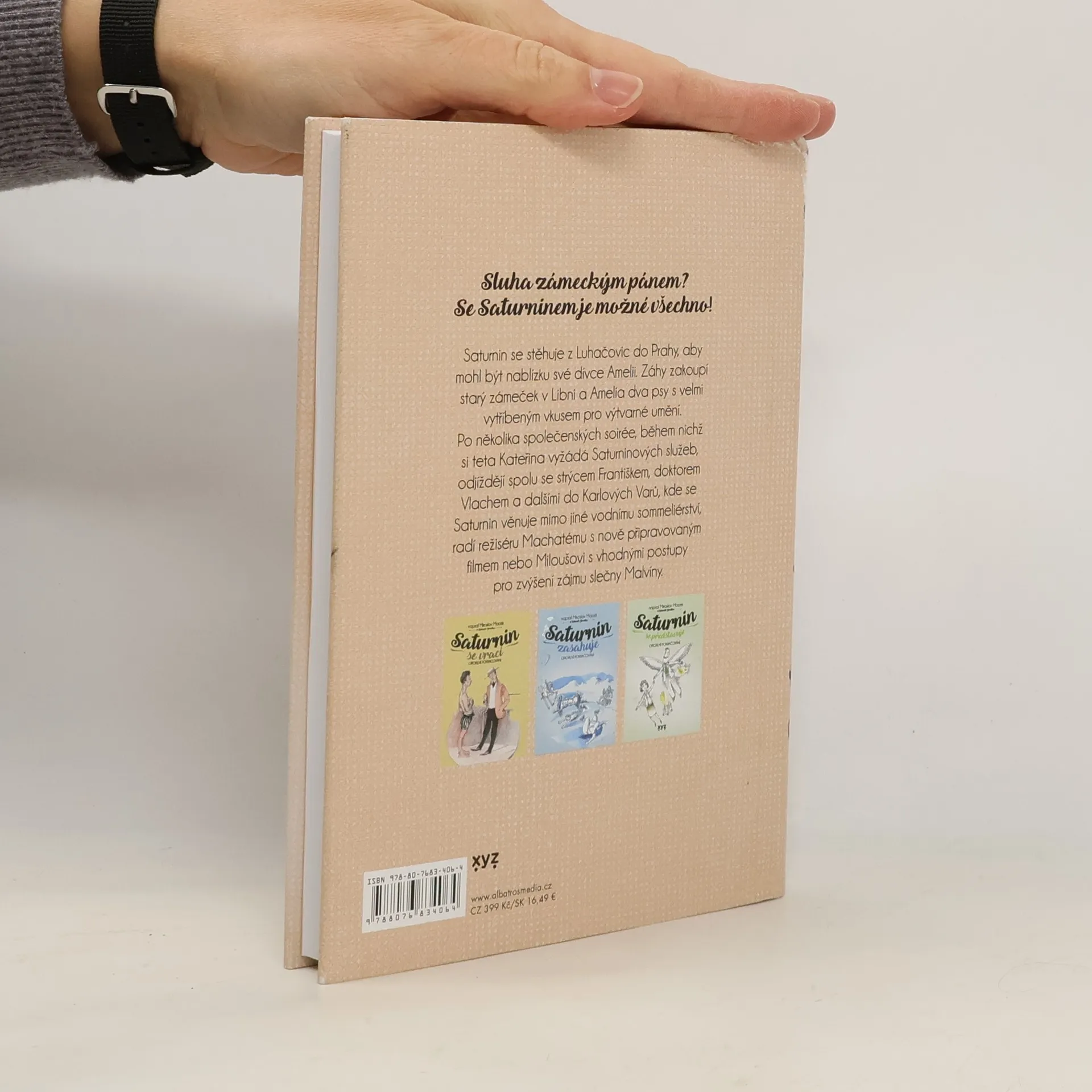 Sluha zámeckým pánem? Se Saturninem je možné všechno!Saturnin se stěhuje z Luhačovic do Prahy, aby mohl být nablízku své dívce Amelii. Záhy zakoupí starý zámeček v Libni a Amelia zase dva psy s vytříbeným vkusem pro výtvarné umění. Poté, co si teta Kateřina vyžádá Saturninových služeb, odjíždějí s ostatními do Karlových Varů. Saturnin se tam bude věnovat vodnímu sommelierství, poradí režiséru Machatému s novým filmem a seznámí Milouše s vhodnými postupy pro zvýšení zájmu slečny Malvíny. A již tradičně si se vším poradí svým navýsost netradičním způsobem…