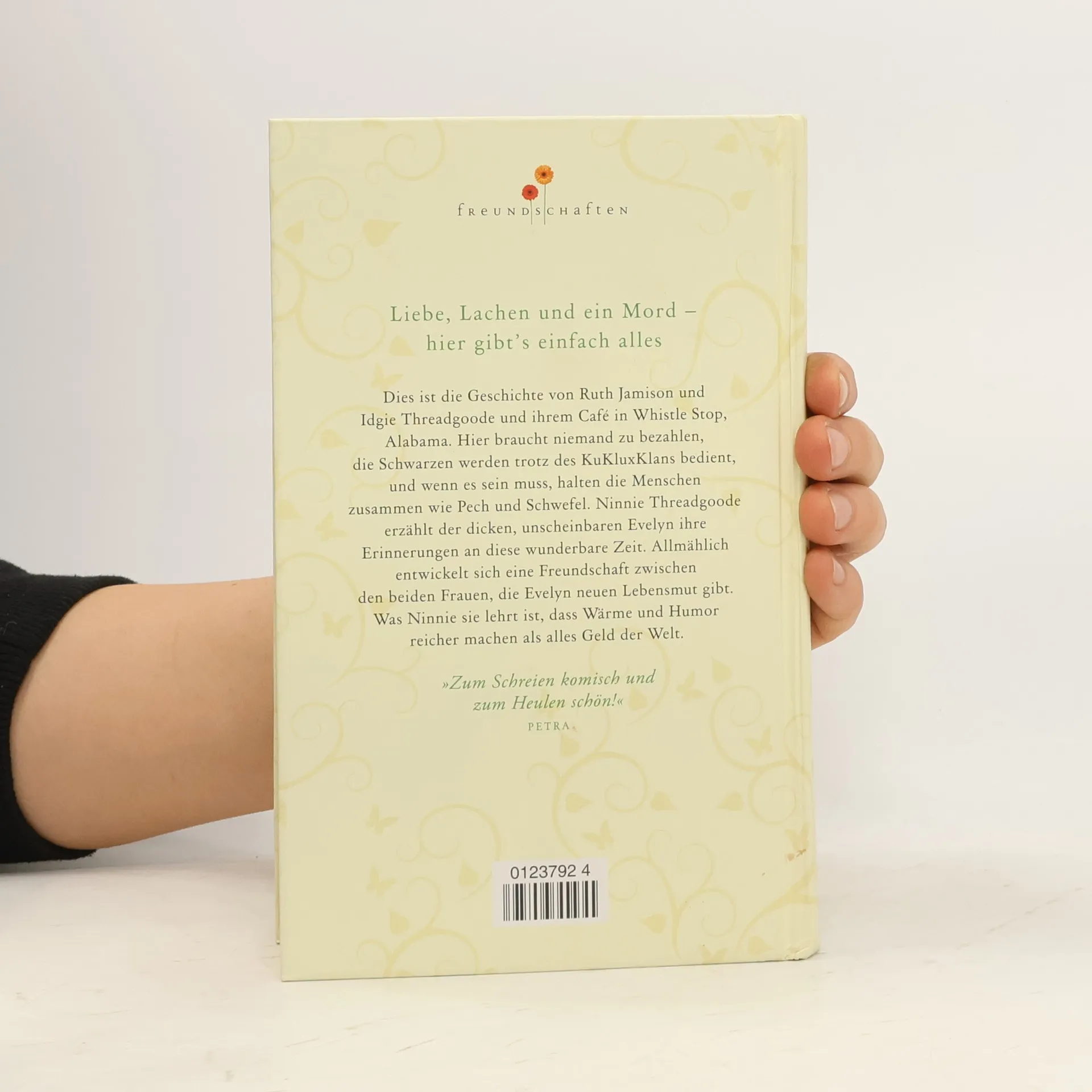 Dies ist die Geschichte von Ruth Jamison und Idgie Threadgoode und ihrem Café in Whistle Stop, Alabama. Hier braucht niemand zu bezahlen, die Schwarzen werden trotz des KuKluxKlans bedient, und wenn es sein muß, halten die Menschen zusammen wie Pech und Schwefel. Ninnie Threadgoode erzählt ihre Erinnerungen an diese wunderbare Zeit der dicken, unscheinbaren Evelyn. Allmählich entwickelt sich eine Freundschaft zwischen den beiden Frauen, die Evelyn neuen Lebensmut gibt. Was Ninnie sie lehrt ist, daß Wärme und Humor reicher machen als alles Geld der Welt.