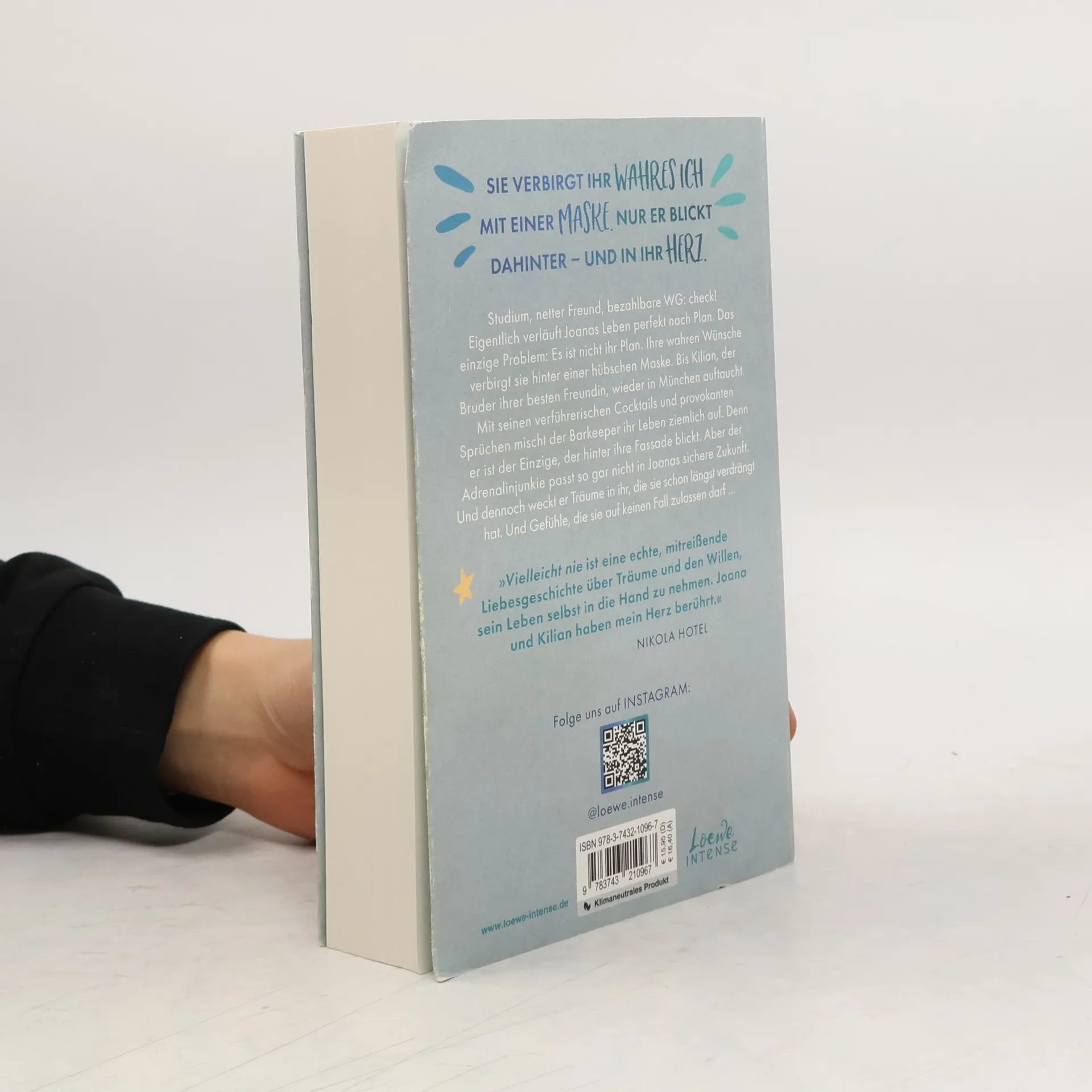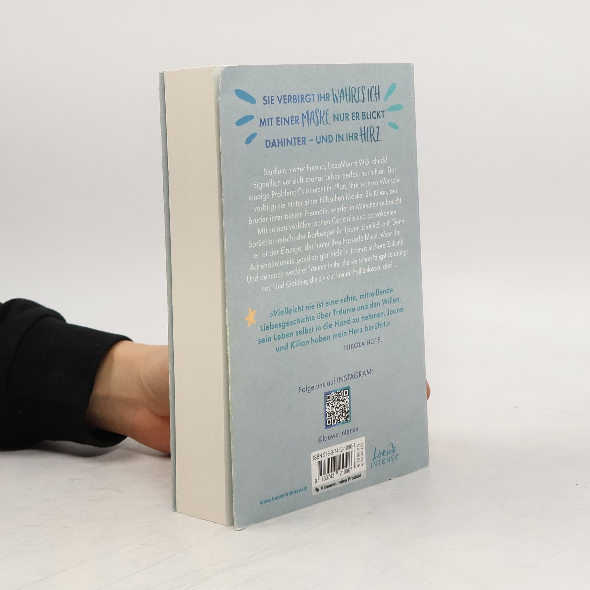 Das Buch ist bei deiner Buchhandlung vor Ort und bei vielen Online-Buchshops erhältlich! Mitreißend, prickelnd, ergreifend! - Die Reihe mit Herzklopfgarantie. Sie verbirgt ihr wahres Ich mit einer Maske. Nur er blickt dahinter – und in ihr Herz. Studium, netter Freund, bezahlbare WG: check! Eigentlich verläuft Joanas Leben perfekt nach Plan, das einzige Problem: Es ist nicht ihr Plan. Ihre wahren Wünsche verbirgt sie hinter einer hübschen Maske. Bis Killian, der Bruder ihrer besten Freundin, wieder in München auftaucht. Mit seinen verführerischen Cocktails und provokanten Sprüchen mischt der Barkeeper ihr Leben ziemlich auf. Denn er ist der Einzige, der hinter ihre Fassade blickt. Doch der Adrenalinjunkie passt so gar nicht in Joanas sichere Zukunft. Aber Kilian weckt Träume in ihr, die sie schon längst verdrängt hat. Und Gefühle, die sie auf keinen Fall zulassen darf … »Vielleicht nie ist eine echte, mitreißende Liebesgeschichte über Träume und den Willen, sein Leben selbst in die Hand zu nehmen. Joana und Kilian haben mein Herz berührt.« Nikola Hotel Im zweiten Band ihrer New Adult-Reihe zeigt Carolin Wahl , wie wichtig es ist, für sich selbst und seine eigenen Träume einzustehen. Eine humorvolle Liebesgeschichte, die auch ernste Themen wie Verlust und Zukunftsangst aufgreift. Mitreißend, prickelnd, ergreifend!