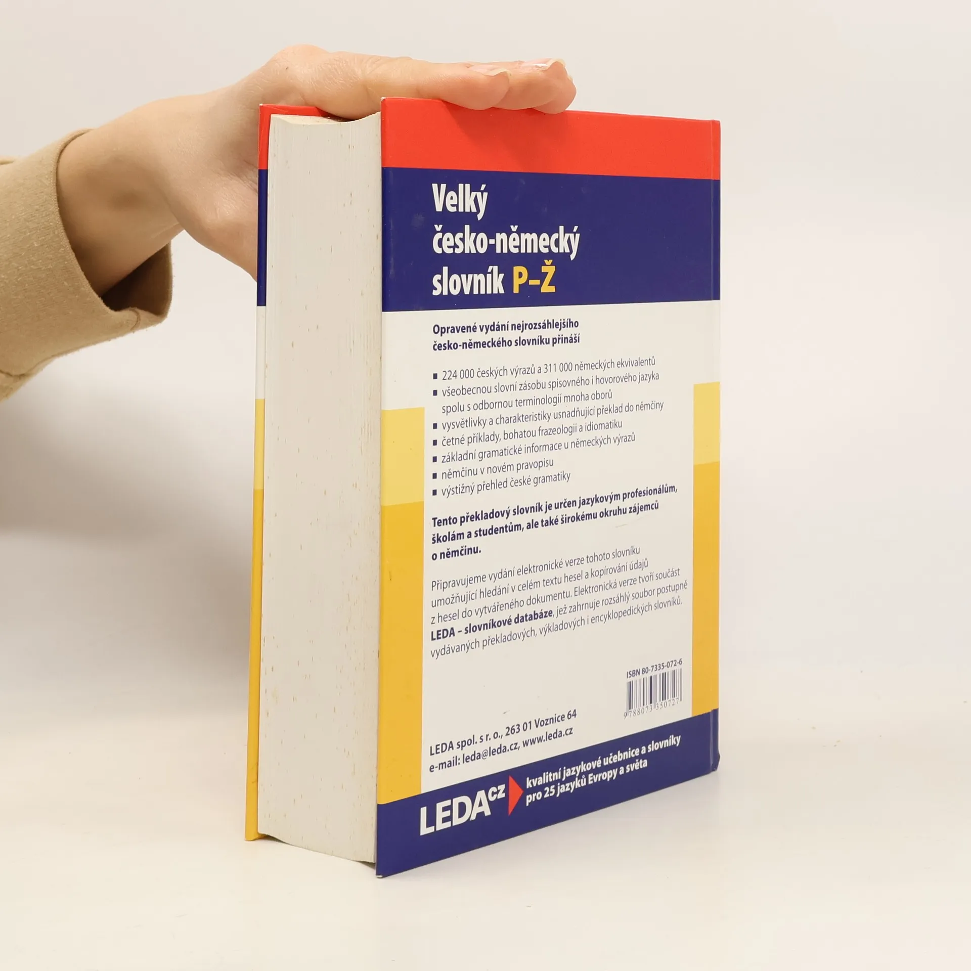 Nové, opravené vydání našeho největšího německo-českého slovníku vzniklého v minulém století obsahuje více než 190 000 německých výrazů a 270 000 českých ekvivalentů. V komplexně zpracovaných heslech přináší všeobecnou slovní zásobu jazyka (i v jeho hovorových a expresivních významech) spolu s odbornou a vědeckou terminologií mnoha oborů. Všechny příklady použití jsou uváděny s českým překladem, bohatě jsou zastoupena ustálená slovní spojení včetně idiomatických výrazů; hesla jsou v dostatečné míře vybavena gramatickým a výslovnostním aparátem. Slovník je vybaven přehledem německé gramatiky a je určen překladatelům, studentům pokročilejších úrovní a všem zájemcům o němčinu.