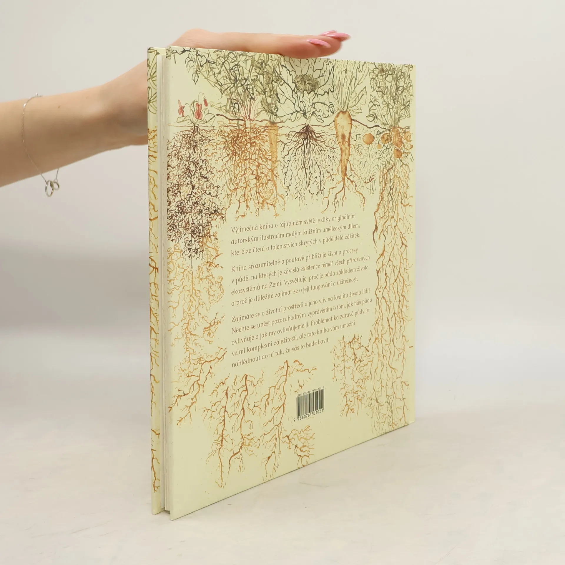 Výjimečná kniha o tajuplném světě, skrytém mezi kořeny, je díky originálním autorským ilustracím malým knižním uměleckým dílem, které ze čtení o tajemstvích skrytých v půdě dělá zážitek. Kniha srozumitelně a poutavě přibližuje život a procesy v půdě, na kterých je závislá existence téměř všech přirozených ekosystémů na Zemi. Vysvětluje, proč je půda základem života a proč je důležité zajímat se o její fungování a užitečnost. Zajímáte se o životní prostředí a jeho vliv na kvalitu života lidí? Nechte se unést pozoruhodným vyprávěním o tom, jak nás půda ovlivňuje a jak my ovlivňujeme ji. Problematika zdravé půdy je velmi komplexní záležitostí, ale tato kniha vám umožní nahlédnout do ní tak, že vás to bude bavit.