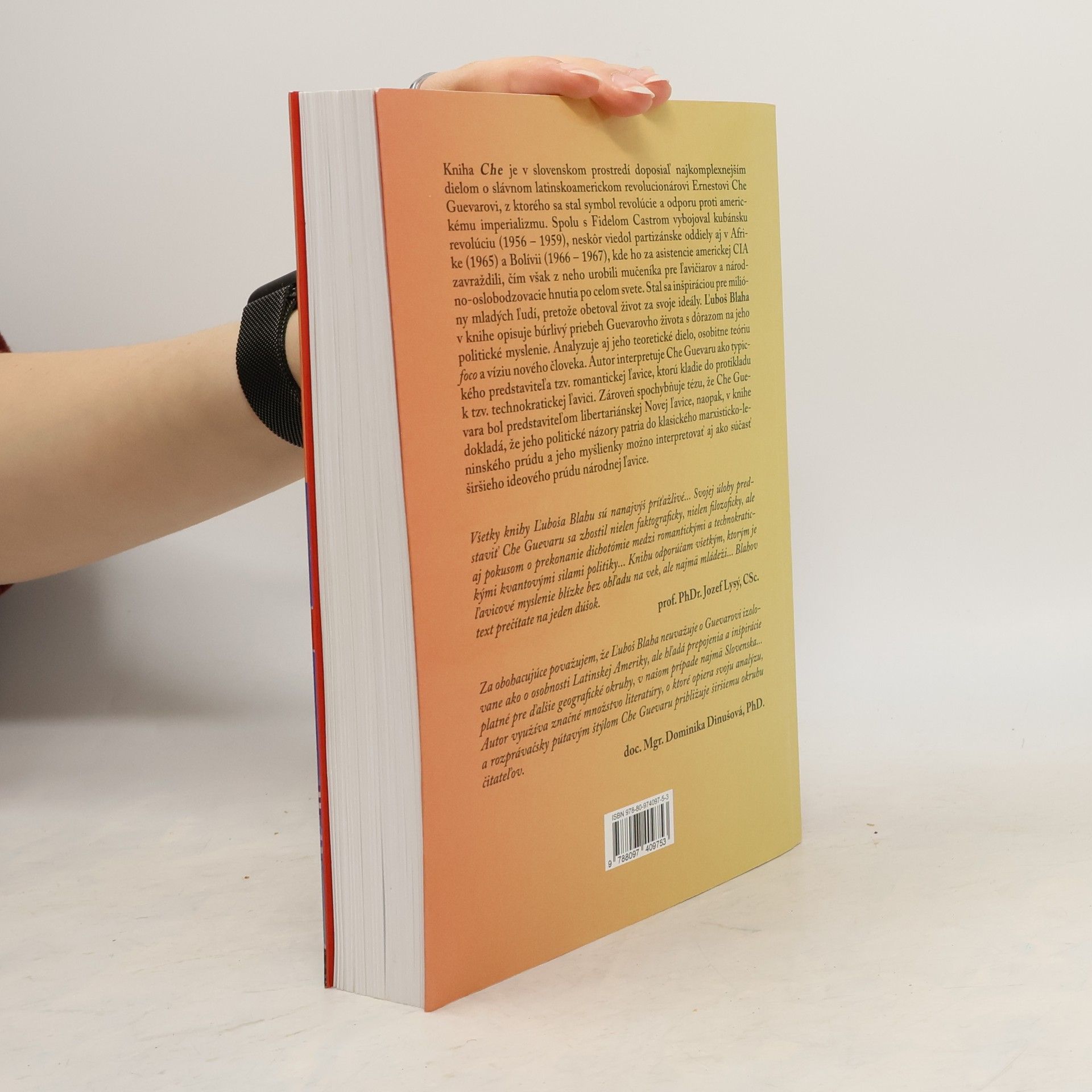 Kniha Che je v slovenskom prostredí doposiaľ najkomplexnejším dielom o slávnom latinskoamerickom revolucionárovi Ernestovi Che Guevarovi, z ktorého sa stal symbol revolúcie a odporu proti americkému imperializmu. Spolu s Fidelom Castrom vybojoval kubánsku revolúciu (1956 – 1959), neskôr viedol partizánske oddiely aj v Afrike (1965) a Bolívii (1966 – 1967(, kde ho za asistencie americkej CIA zavraždili, čím však z neho urobili mučeníka pre ľavičiarov a národno-oslobodzovacie hnutia po celom svete. Stal sa inšpiráciou pre milióny mladých ľudí, pretože obetoval život za svoje ideály. Ľuboš Blaha v knihe opisuje búrlivý priebeh Guevarovho života s dôrazom na jeho politické myslenie. Analyzuje aj jeho dielo, osobitne teóriu foco a víziu nového človeka. Autor interpretuje Che Guevaru ako typického predstaviteľa tzv. romantickej ľavice, ktorú kladie do protikladu k tzv. technokratickej ľavici. Zároveň spochybňuje tézu, že Che Guevara bol predstaviteľom libertariánskej Novej ľavice, naopak, v knihe dokladá, že jeho politické názory patria do klasického marxisticko-leninského prúdu a jeho myšlienky možno impretovať aj ako súčasť širšieho ideového prúdu národnej ľavice.