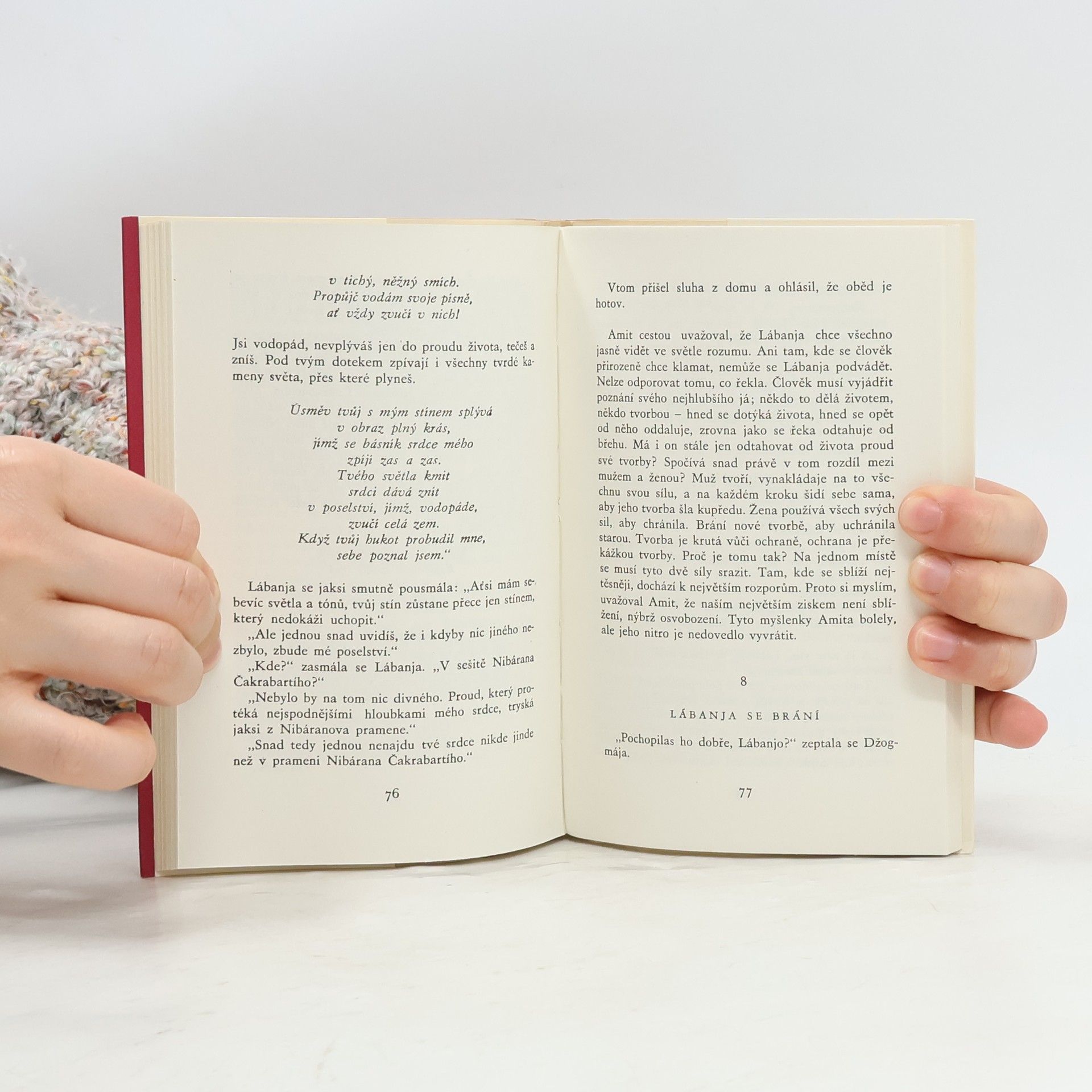 Jeden z kratších románů nejvýznamnějšího představitele moderní indické literatury (1861-1941), jemně vykreslená epizoda lásky mladého právníka a básníka Amita a stejně půvabné jako vzdělané dívky Lábanje.