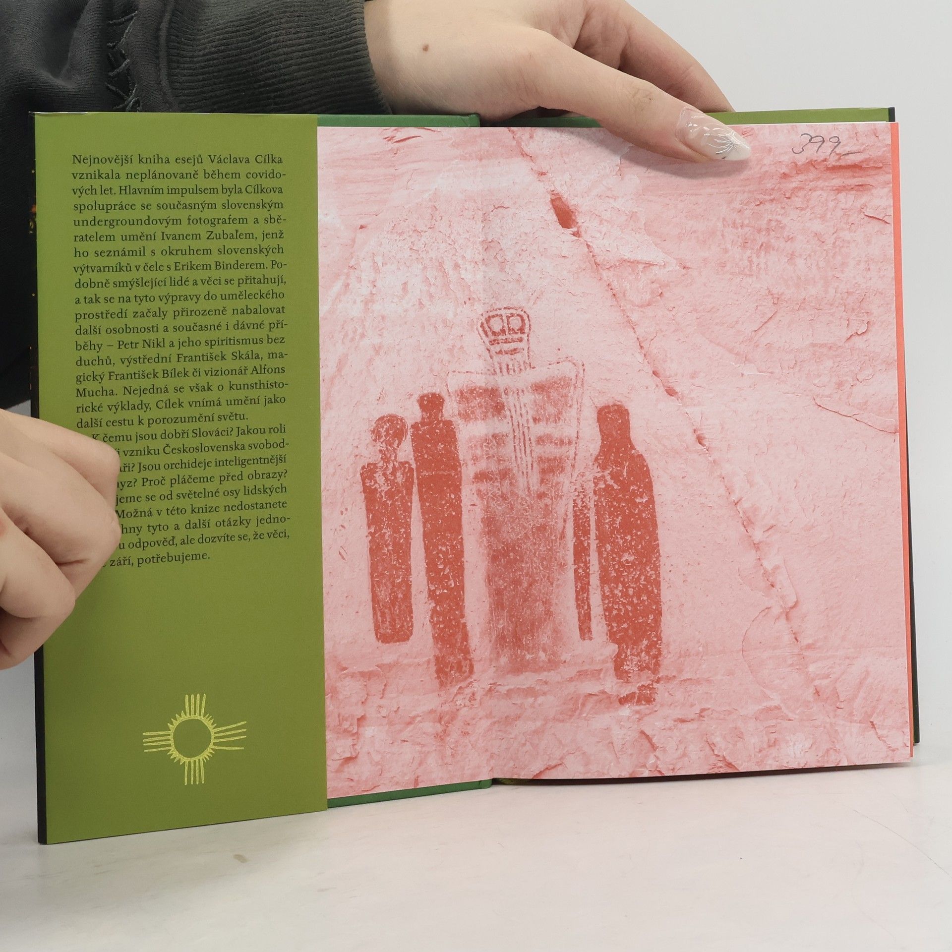 Nejnovější kniha esejů Václava Cílka vznikala neplánovaně během covidových let. Hlavním impulsem byla Cílkova spolupráce se současným slovenským undergroundovým fotografem a sběratelem umění Ivanem Zubaľem, jenž ho seznámil s okruhem slovenských výtvarníků v čele s Erikem Binderem. Podobně smýšlející lidé a věci se přitahují, a tak se na tyto výpravy do uměleckého prostředí začaly přirozeně nabalovat další osobnosti a současné i dávné příběhy – Petr Nikl a jeho spiritismus, výstřední František Skála, magický František Bílek či vizionář Alfons Mucha. Nejedná se však o kunsthistorické výklady, Cílek vnímá umění jako další, na logiku navazující cestu k porozumění světu.