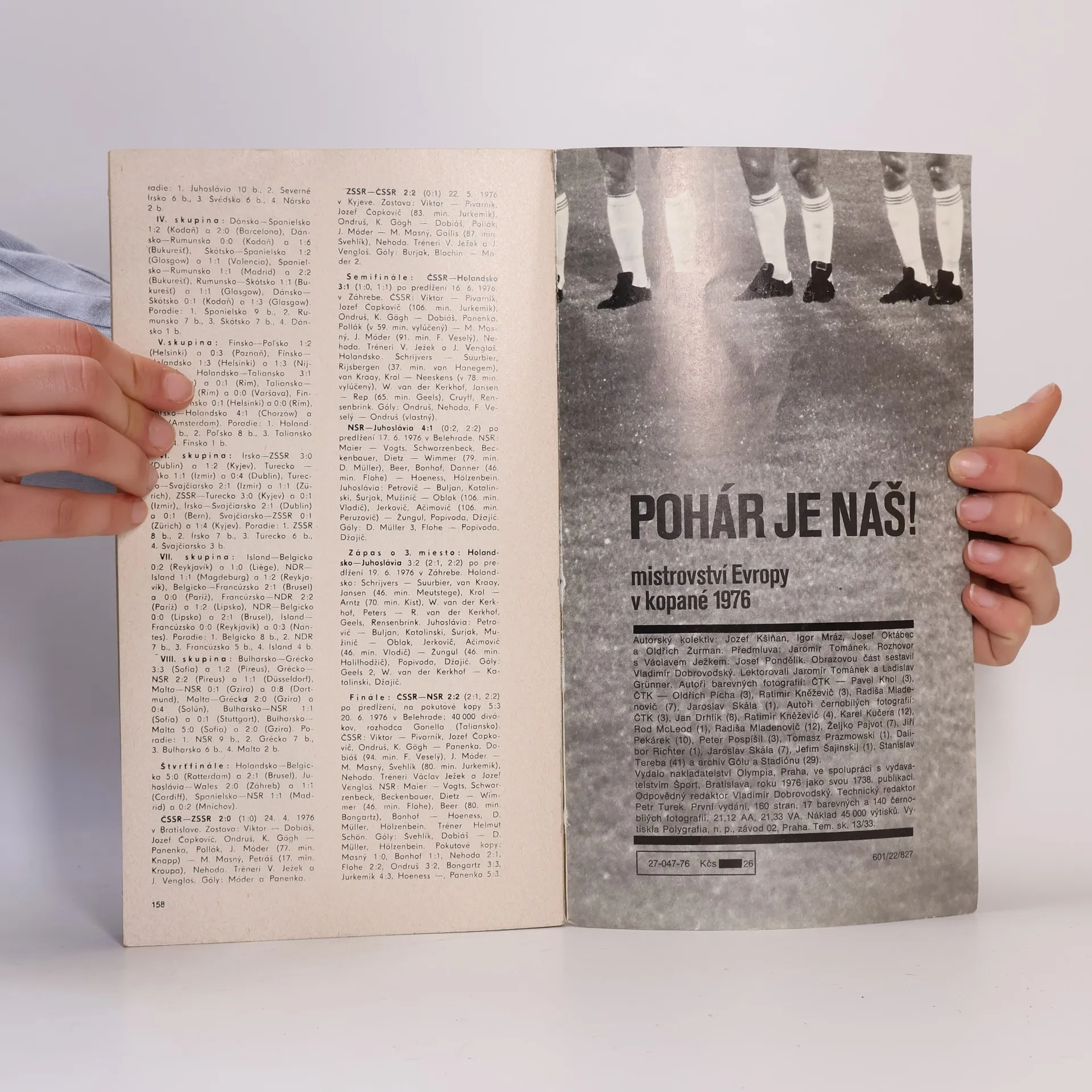 ME v kopané 1976 Vypráví slovem i obrazem o tom, jaké to bylo pro naše fotbalisty, když poprvé stanuli na stupni nejvyšším, o tom, jakou taktiku naše mužstvo zvolilo, o „mistrových hrátkách s čertem“, o tradičních soupeřích a netradičních výsledcích, o kabině plné štěstí a mnohém dalším. Publikace je skutečnou lahůdkou pro milovníky fotbalu.