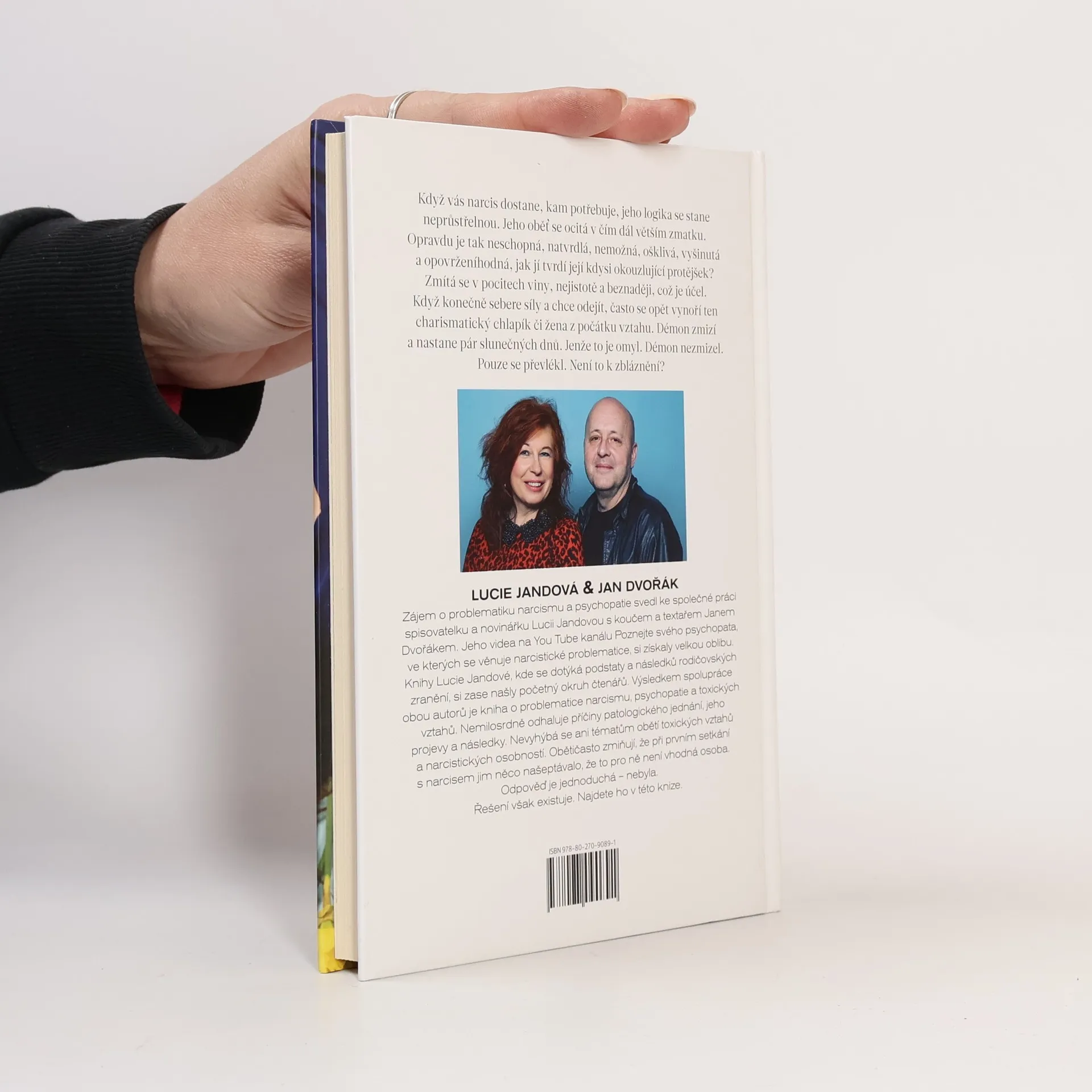 Když vás narcis dostane, jeho logika se stává neprůstřelnou a oběť se ocitá v chaosu. Zpochybňuje své schopnosti a vzhled, což je účel manipulace. Když se rozhodne odejít, často se objeví charismatický partner, což je klam. Démon nezmizel, jen se převlékl. Zájem o narcismus a psychopatii spojil spisovatelku a novinářku Lucii Jandovou s koučem a textařem Janem Dvořákem. Jeho videa na YouTube kanálu Poznejte svého psychopata se stala populárními. Jandová se ve svých knihách zaměřuje na důsledky rodičovských zranění a její práce si našla široké publikum. Společně vytvořili dílo, které se zabývá narcisismem, psychopatií a toxickými vztahy. Proč jich přibývá? Odpověď může být v naší době. Kniha odhaluje příčiny patologického chování, jeho projevy a následky, a také se věnuje obětem těchto vztahů. Autoři se ptají, proč oběti nerozpoznají manipulace narcisů, přičemž mnohé z nich při prvním setkání cítily varovné signály. Odpověď je jednoduchá – nebyly si vědomy nebezpečí. Řešení však existuje a je obsaženo v této knize.