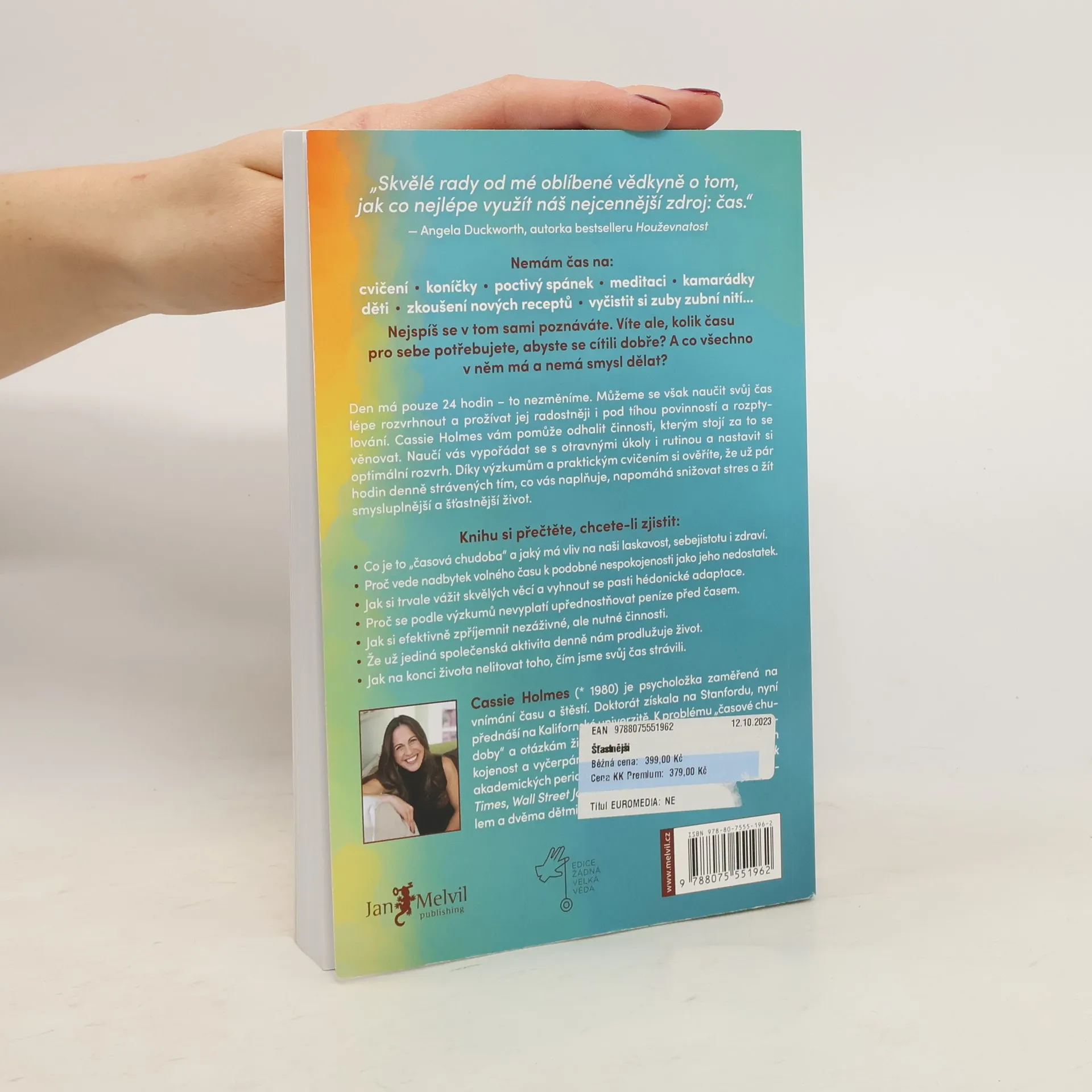 Den má pouze 24 hodin – to nezměníme. Můžeme se však naučit odhalit činnosti, kterým stojí za to se věnovat. Zjistíme, jak si nastavit optimální denní rozvrh a lépe se vypořádávat i s otravnými povinnostmi a rutinou. Díky výzkumům i praktickým cvičením v knize si navíc ověříte, že už pár chvilek denně strávených tím, co vás naplňuje, napomáhá snižovat stres a žít smysluplnější a šťastnější život.