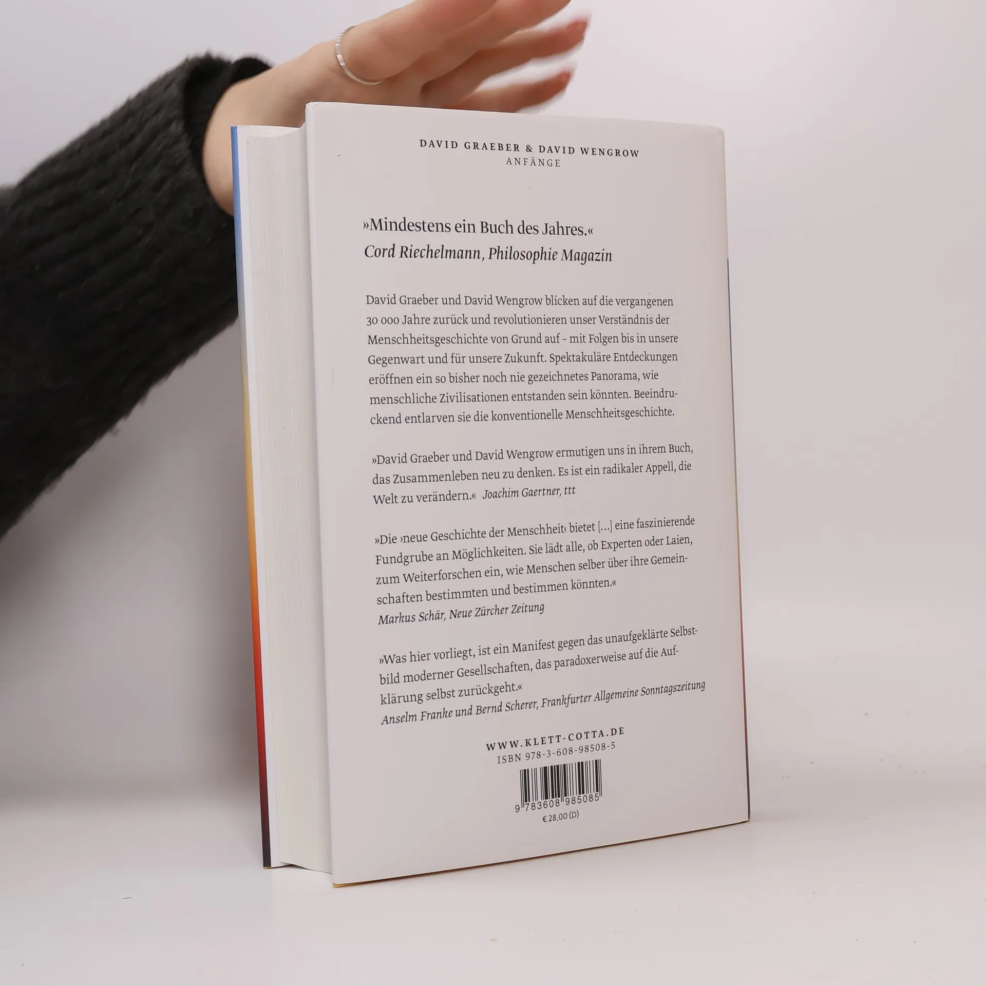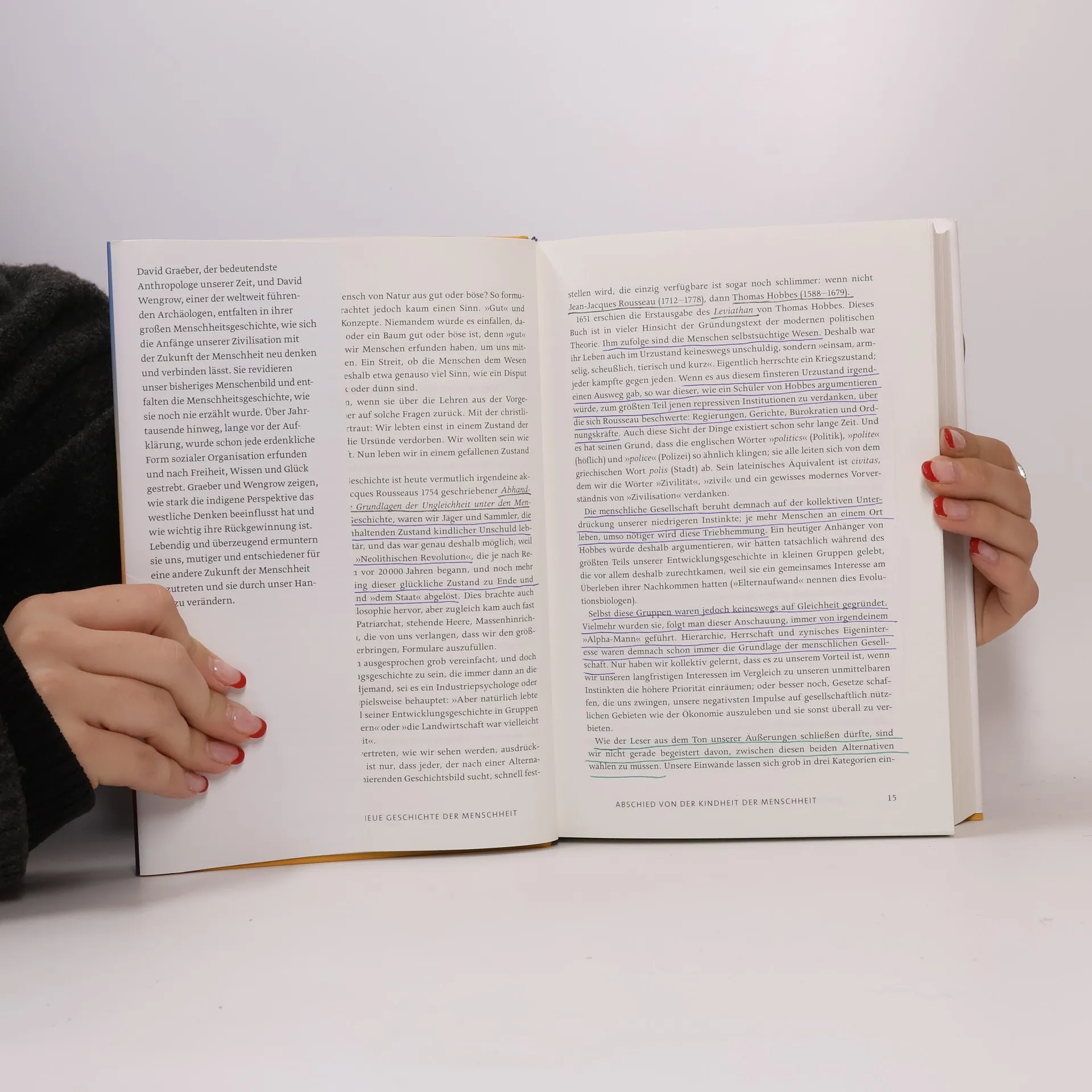 Faszinierend, provozierend, bahnbrechend – ein Buch, das in den kommenden Jahren für Diskussionen sorgen wird. David Graeber, der bedeutendste Anthropologe unserer Zeit, und David Wengrow, einer der führenden Archäologen, entfalten in ihrer umfassenden Menschheitsgeschichte, wie sich die Anfänge unserer Zivilisation mit der Zukunft der Menschheit neu verbinden lassen. Sie revidieren unser bisheriges Menschenbild und erzählen die Geschichte der Menschheit auf eine völlig neue Weise. Über Jahrtausende hinweg wurden vielfältige Formen sozialer Organisation erfunden, und das Streben nach Freiheit, Wissen und Glück war bereits vor der Aufklärung präsent. Graeber und Wengrow zeigen, wie stark indigene Perspektiven das westliche Denken beeinflusst haben und wie wichtig deren Rückgewinnung ist. Sie ermuntern uns, mutiger für eine andere Zukunft der Menschheit einzutreten und diese durch unser Handeln zu verändern. Graeber, ein bedeutender Kulturanthropologe und Vordenker der Occupy-Bewegung, inspirierte viele mit seinen Ideen zur sozialen Gerechtigkeit. Am 2. September 2020 starb er überraschend, kurz nachdem er und Wengrow ihr Werk abgeschlossen hatten. Dieses Meisterwerk ist Graebers Vermächtnis und regt dazu an, die menschlichen Fähigkeiten neu zu überdenken und die Geschichte in einem neuen Licht zu sehen. Es entlarvt Klischees über die Menschheitsgeschichte und eröffnet neue Möglichkeiten für die Zukunft.