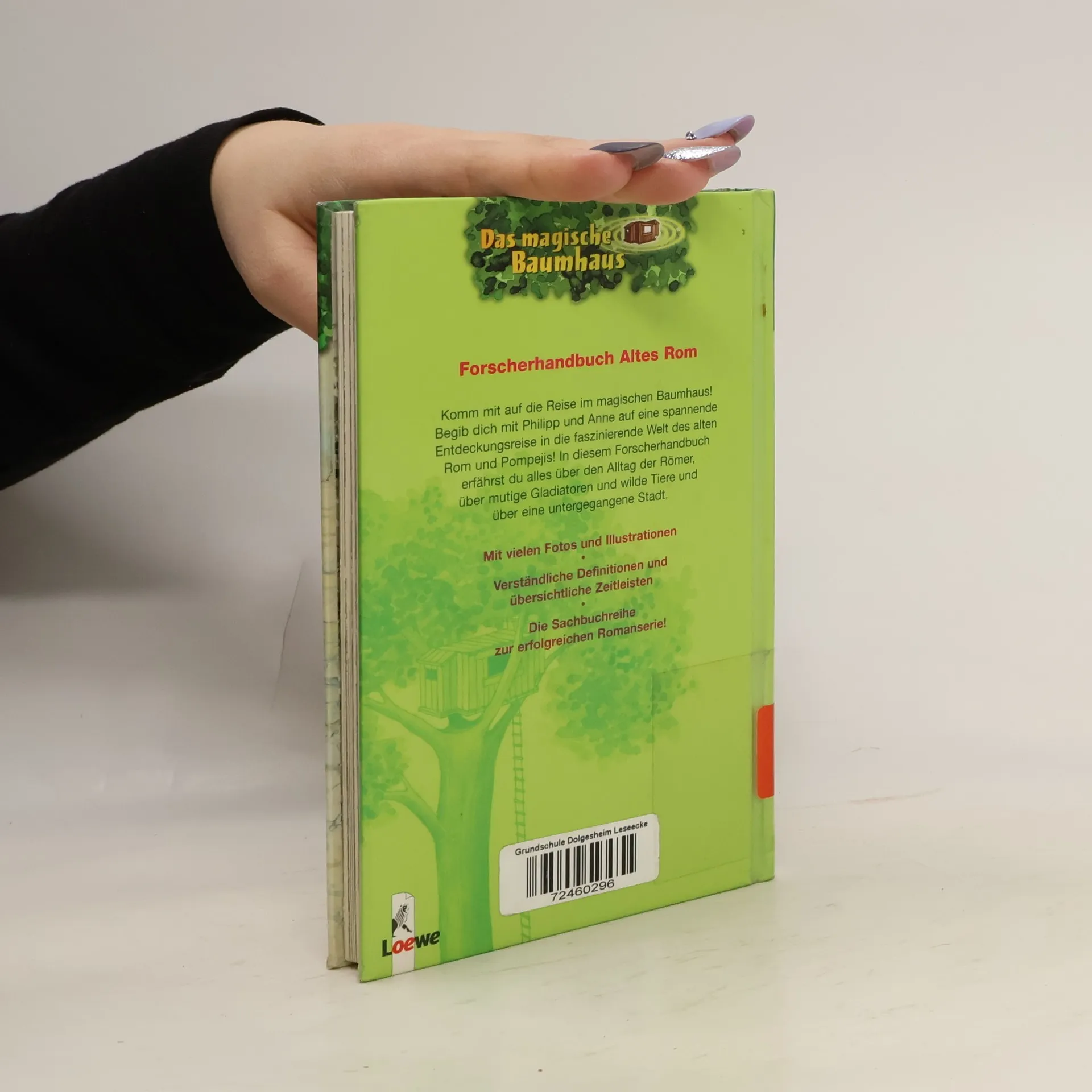 + Bücher, die Kinder gerne lesen wollen + Beliebte Themen: Abenteuer, Tiere und fremde Länder + Hochwertiges Hardcover + Mit vielen Illustrationen + Bereits über 10 Millionen verkaufte Bücher der Baumhaus-Reihe + Ausgewogenes Text-Bild-Verhältnis + Große Schrift + Kurze Kapitel + Spannendes Sachwissen + Komm mit auf die Reise im magischen Baumhaus! Begib dich mit Philipp und Anne auf eine spannende Entdeckungsreise in die faszinierende Welt des alten Rom und Pompejis ! In diesem Forscherhandbuch erfährst du alles über den Alltag der Römer , über mutige Gladiatoren und wilde Tiere und über eine untergegangene Stadt . · Mit vielen Fotos und Illustrationen · Verständliche Definitionen und übersichtliche Zeitleisten · Die Sachbuchreihe zur erfolgreichen Romanserie!