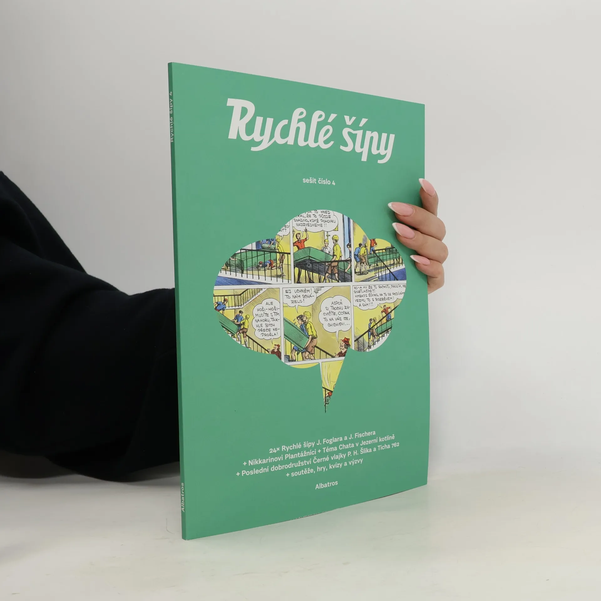 Čtvrtá sešitovka Rychlých šípů. Tentokrát s náloží zajímavostí o Chatě v Jezerní kotlině! V moderním sešitovém vydání Rychlých šípů najdete původní díly slavného komiksu i nové příběhy ze světa Jaroslava Foglara od současných tvůrců. V komiksu Poslední dobrodružství Černé vlajky, který podle scénáře Petra Hugo Šlika nakreslil Ticho 762, se vydáte do Sudet těsně po německém záboru. Nechybí ani Nikkarinovi Plantážníci, únikovka od Honzy Smolíka nebo cesta do Jezerní kotliny z pera Pavla Čecha. A právě legendární Chatě v Jezerní kotlině se věnuje téma čísla.