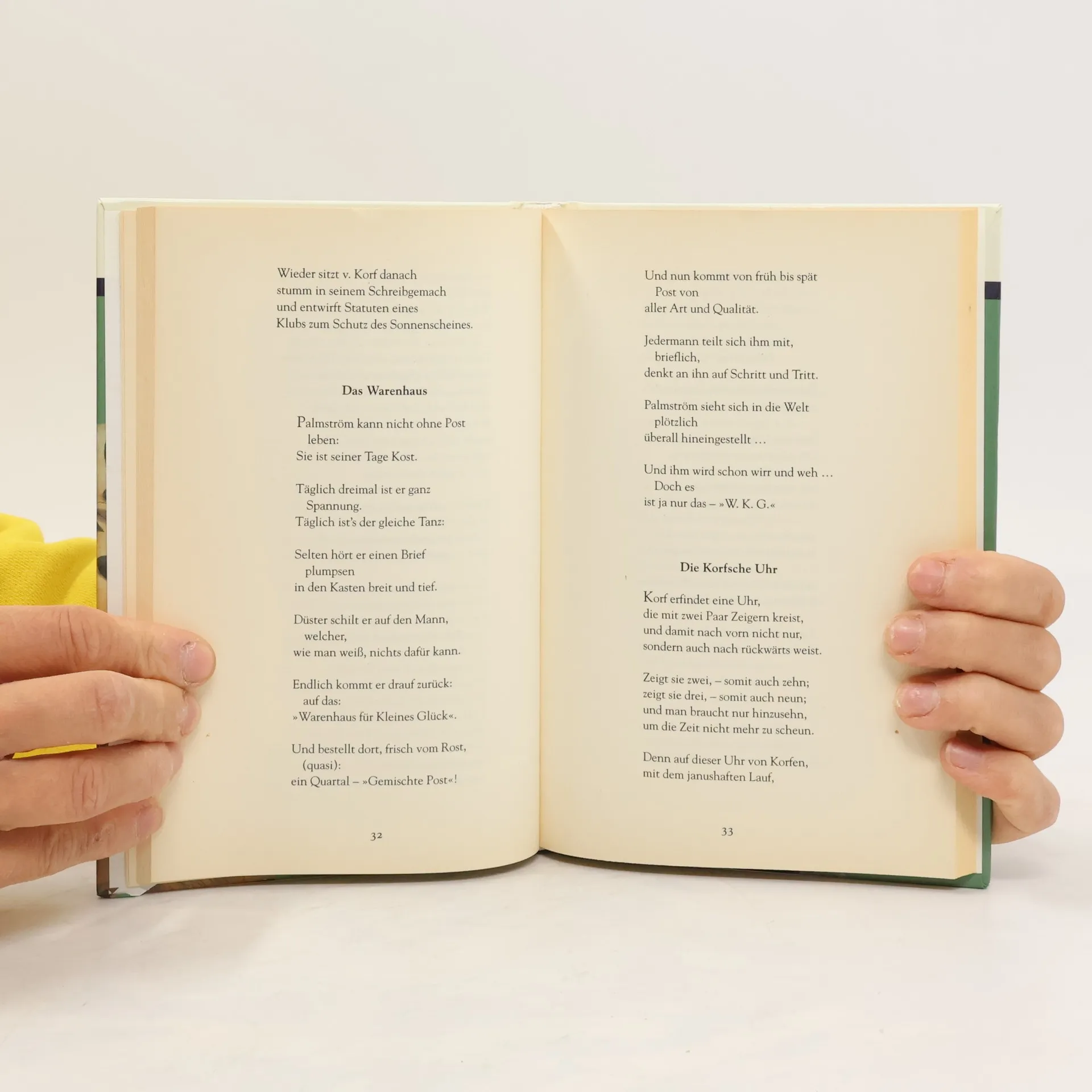 Ob 'Das ästhetische Wiesel', das 'Möwenlied' oder die Palmström-Gedichte, das Lied vom 'Lattenzaun, mit Zwischenraum, hindurchzuschau' oder die Erfindung des 'Nasob? ms': Christian Morgenstern ist nicht nur einer der originellsten deutschen Dichter des 20. Jahrhunderts, er ist neben Joachim Ringelnatz auch einer der beliebtesten. 'Man lacht sich krumm', meinte bereits Tucholsky, 'bewundert hinterher, ernster geworden, eine tiefe Lyrik, die nur im letzten Augenblick ins Spaßhafte abgedreht ist – und merkt zum Schluss, dass man einen philosophischen Satz gelernt hat.' Ironisch kommentierte Morgenstern selbst, dass die 'Galgenpoesie' ein Stück Weltanschauung sei und man die Welt vom Galgen her anders betrachte. Weiser vielleicht und gewiss mit größerer Aufmerksamkeit.