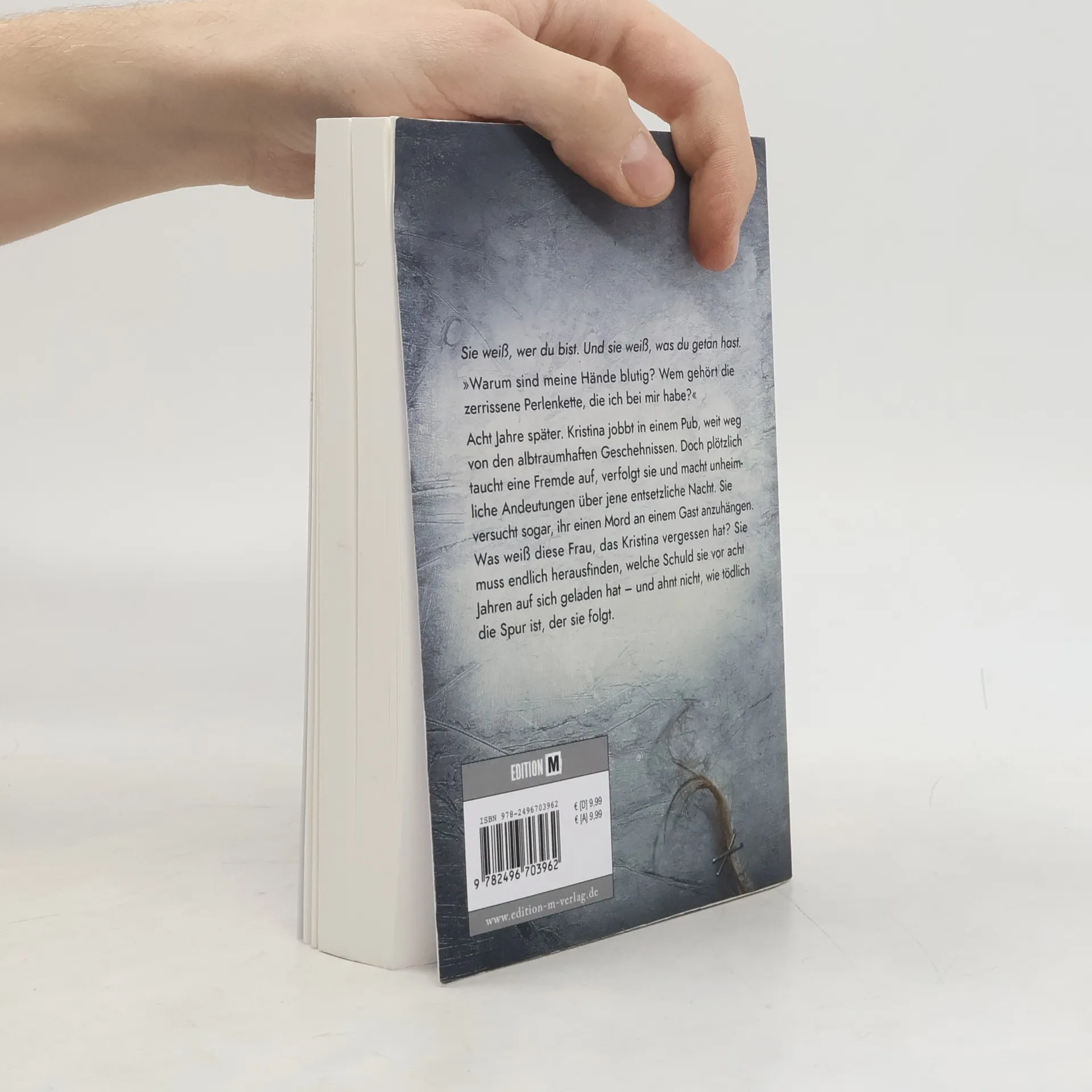 Der neue packende Psychothriller von Bild-Bestsellerautorin Saskia Calden. Sie weiß, wer du bist. Und sie weiß, was du getan hast. »Warum sind meine Hände blutig? Wem gehört die zerrissene Perlenkette, die ich bei mir habe?« Acht Jahre später. Kristina jobbt in einem Pub, weit weg von den albtraumhaften Geschehnissen. Doch plötzlich taucht eine Fremde auf, verfolgt sie und macht unheimliche Andeutungen über jene entsetzliche Nacht. Sie versucht sogar, ihr einen Mord an einem Gast anzuhängen. Was weiß diese Frau, das Kristina vergessen hat? Sie muss endlich herausfinden, welche Schuld sie vor acht Jahren auf sich geladen hat – und ahnt nicht, wie tödlich die Spur ist, der sie folgt.