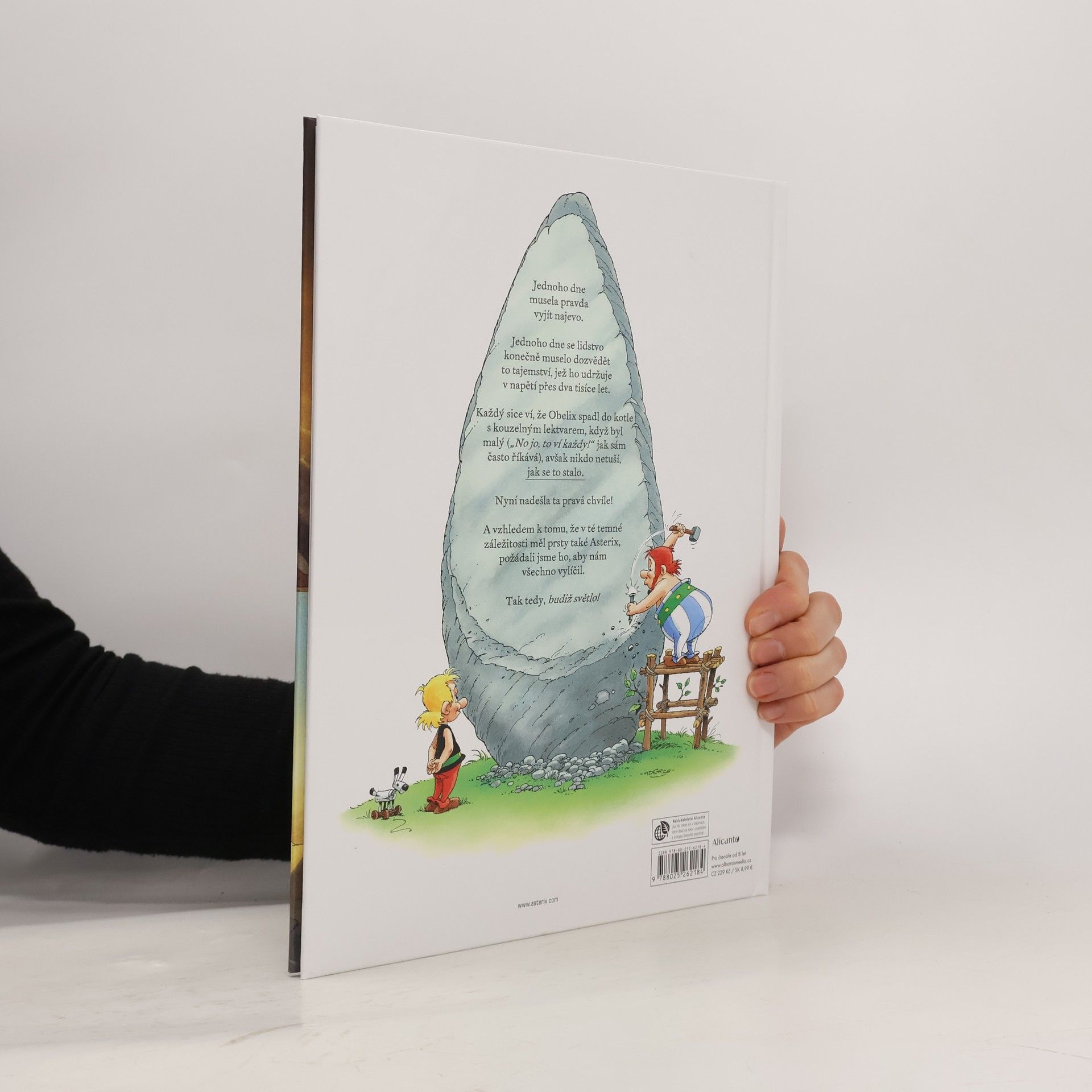 "Úplně první dobrodružství Asterixe a Obelixe" Jednoho dne musí pravda vyjít najevo. Jednoho dne se lidstvo konečně musí dozvědět to tajemství, jež ho udržuje v napětí přes dva tisíce let. Každý sice ví, že Obelix spadl do kotle s kouzelným lektvarem, když byl malý, jenže nikdo netuší, jak se to vlastně stalo.