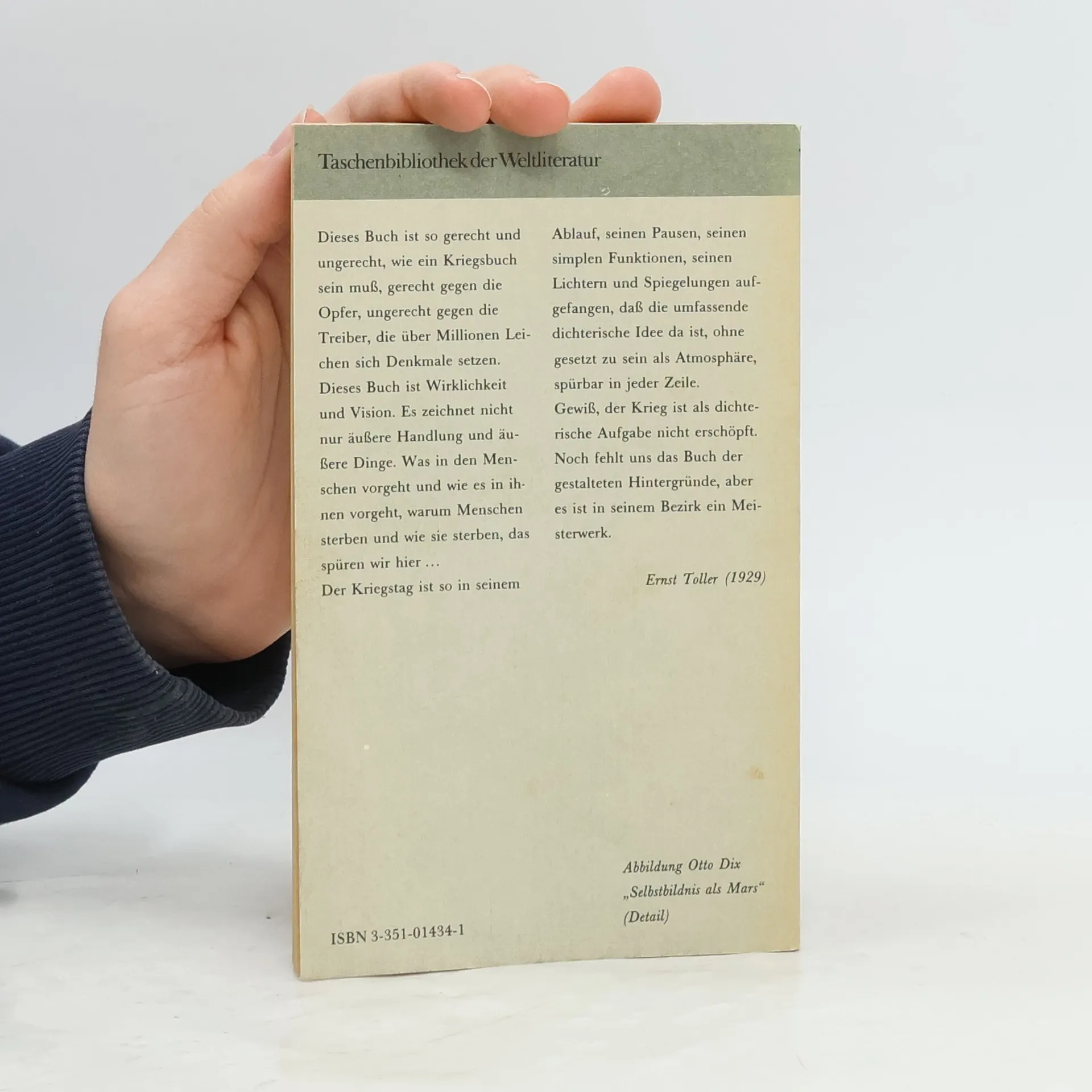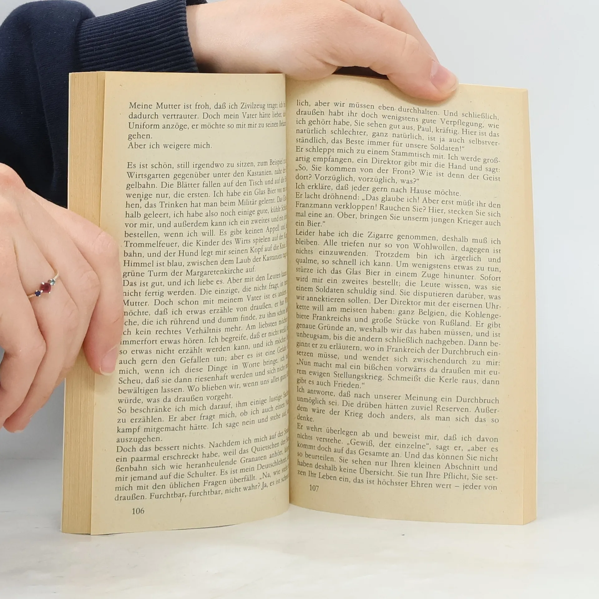 Paul Bäumer tritt zusammen mit seinen Klassenkameraden in die Armee des 1. Weltkrieges ein. Jung und enthusiastisch werden sie Soldaten. Aber trotz ihrer Ausbildung, zerbrechen sie an dem ersten Bombardement in den Schützngräben. Während der Krieg Jahr um Jahr hinzieht, hält Paul an einem Schwur fest: gegen die Prinzipien des Hasses zu kämpfen, die junge Männer einer ganzen Generation, aber in unterschiedlichen Uniformen bedeutungslos gegeneinander ausspielen--sollte er jemals lebend den Krieg überstehen. "Dieses Buch ist so gerecht und unmgerecht, wie ein Kriegsbuch sein muß, gerecht gegen die Opfer, ungerecht gegen die Treiber, die über Millionen Leichen sich Denkmale setzen. Diese Buch ist Wirklichkeit und Vision. Es zeichnet nicht nur äußere Handlung und äußere Dinge. Was in den Menschen vorgeht und wie es in ihnen vorgeht, warum Menschen sterben und wie sie sterben, das spüren wir hier... Der Kriegstag ist so in seinem Ablauf, seinen Pausen, seinen simplen Funktionen, seinen Lichtern und Spiegelungen aufgefangen, daß die umfassende dichterische Idee da ist, ohne gesetzt zu sein als Atmosphäre, spürbar in jeder Zeile. Gewiß, der Krieg ist als dichterische Aufgabe nicht erschöpft. Noch fehlt uns das Buch der gestelteten Hintergründe, aber es ist in seinem Bezirk ein Meisterwerk" (Ernst Toller, 1929)