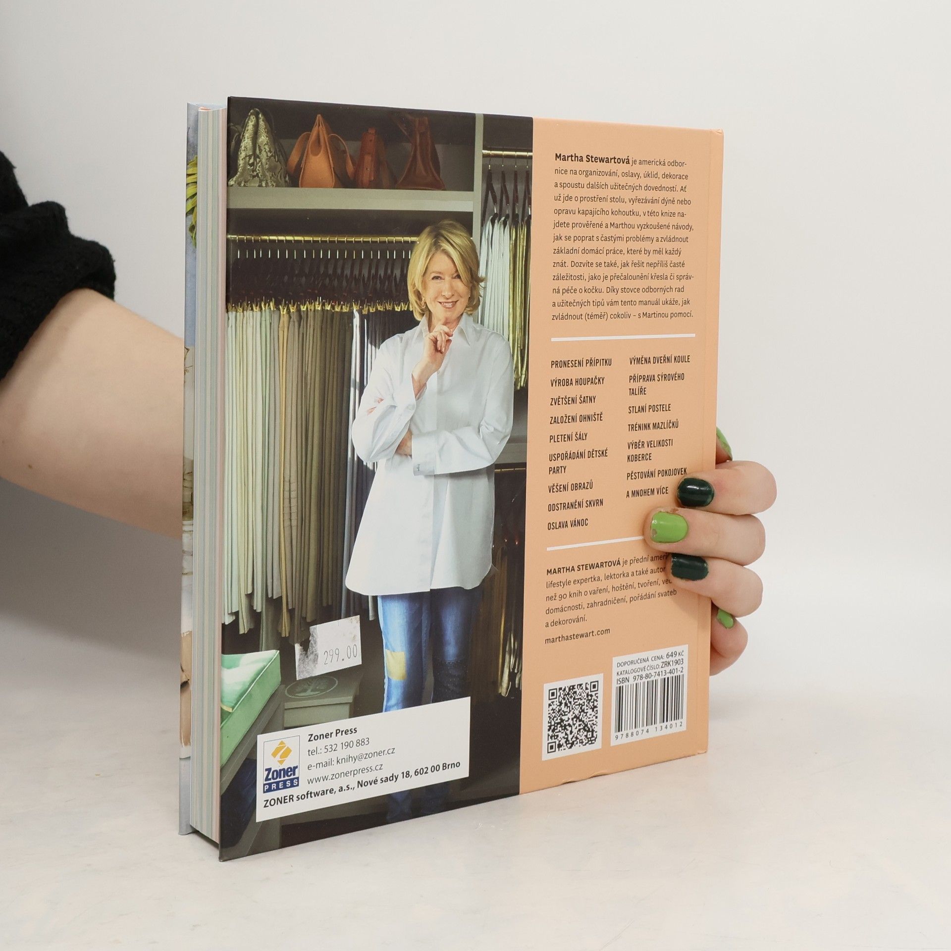 Jak zvládnout (téměř) cokoli. „Stále teď slýcháme, že jsme příliš zaneprázdnění učit se něco nového – že do svého rozvrhu nedokážeme napasovat lekci zahradničení, šití nebo seminář malování. S tím důrazně nesouhlasím! Položte telefon a vezměte si pletací jehlice, zahradnickou lopatku nebo dokonce šroubovák – a vyrábějte, pěstujte, opravujte. Budete rádi, že jste to udělali.“ Martha Stewartová je americká odbornice na organizování, oslavy, úklid, dekorace a spoustu dalších užitečných dovedností. Ať už jde o prostření stolu, vyřezávání dýně nebo opravu kapajícího kohoutku, v této knize najdete prověřené a Marthou vyzkoušené návody, jak se poprat s častými problémy a zvládnout základní domácí práce, které by měl každý znát. Dozvíte se také, jak řešit nepříliš časté záležitosti, jako je přečalounění křesla či správná péče o kočku. Díky stovce odborných rad a užitečných tipů vám tento manuál ukáže, jak zvládnout (téměř) cokoliv – s Martinou pomocí. V knize najdete například rady a tipy ohledně pronesení přípitku, výroby houpačky, zvětšení šatny, založení ohniště, pletení šály, uspořádání dětské párty, věšení obrazů, odstranění skvrn, oslavy Vánoc, výměny dveřní koule, přípravy sýrového talíře, stlaní postele, tréninku mazlíčků, výběru velikosti koberce, pěstování pokojovek a mnohem více