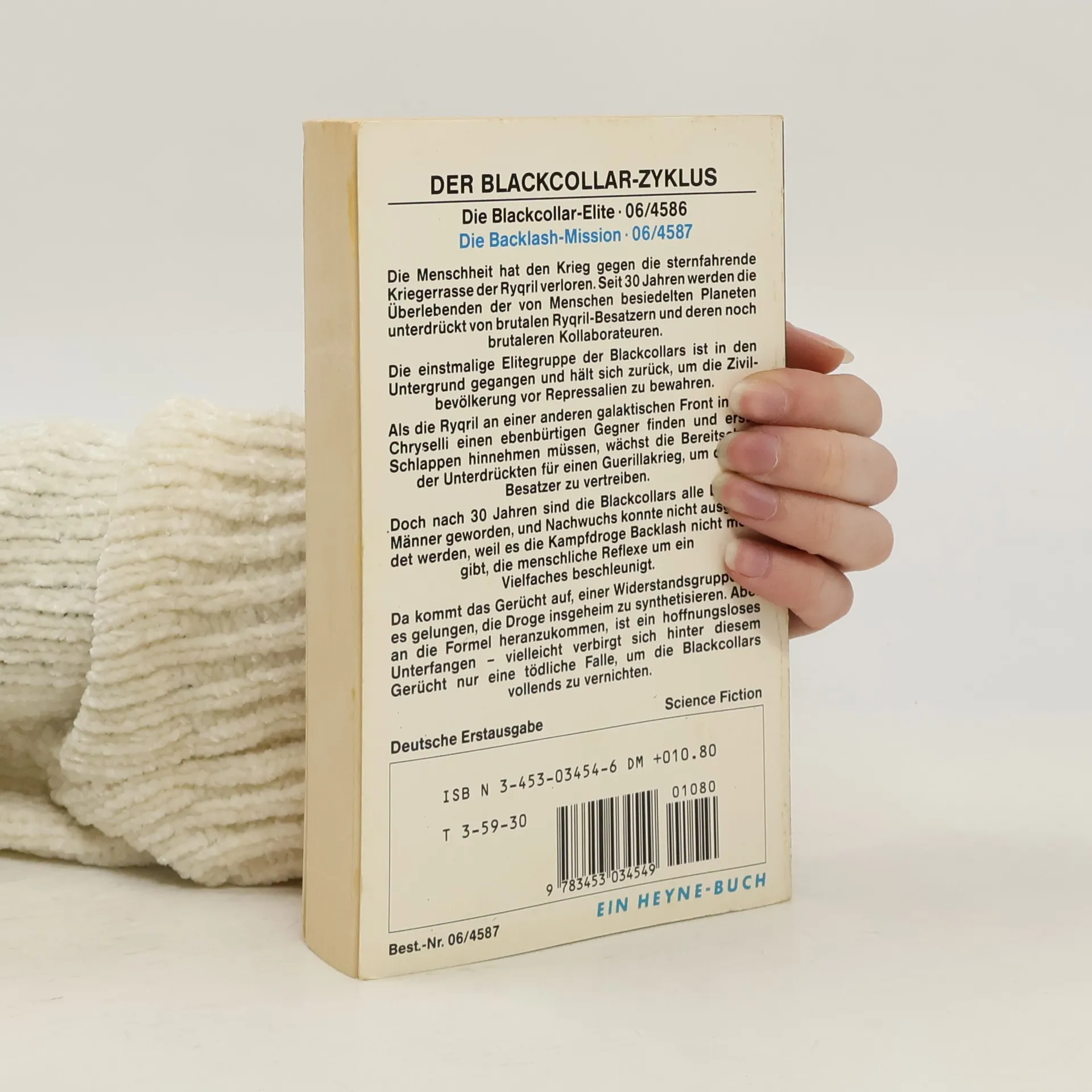 Backlash hieß die legendäre Kriegsdroge, die aus den Blackcollars Kampfmaschinen machte. Die Menschheit hat den Krieg gegen die sternfahrende Kriegerrasse der Ryqril verloren. Seit 30 Jahren werden die Überlebenden der von Menschen besiedelten Planeten unterdrückt von brutalen Ryqril-Besatzern und deren noch brutaleren Kollaborateuren. Die einstmalige Elitegruppe der Blackcollars ist in den Untergrund gegangen und hält sich zurück, um die Zivilbevölkerung vor Repressalien zu bewahren. Als die Ryqril an einer anderen galaktischen Front in den Chryselli einen ebenbürtigen Gegner finden und erste Schlappen hinnehmen müssen, wächst die Bereitschaft der Unterdrückten für einen Guerillakrieg, um die Besatzer zu vertreiben. Doch nach 30 Jahren sind die Blackcollars alle betagte Männer geworden, und Nachwuchs konnte nicht ausgebildet werden, weil es die Kampfdroge Backlash nicht mehr gibt, die menschliche Reflexe um ein Vielfaches beschleunigt. Da kommt das Gerücht auf, einer Widerstandsgruppe sei es gelungen, die Droge insgeheim zu synthetisieren. Aber an die Formel heranzukommen, ist ein hoffnungsloses Unterfangen - vielleicht verbirgt sich hinter diesem Gerücht nur eine tödliche Falle, um die Blackcollars vollends zu vernichten. Heyne 06/4587