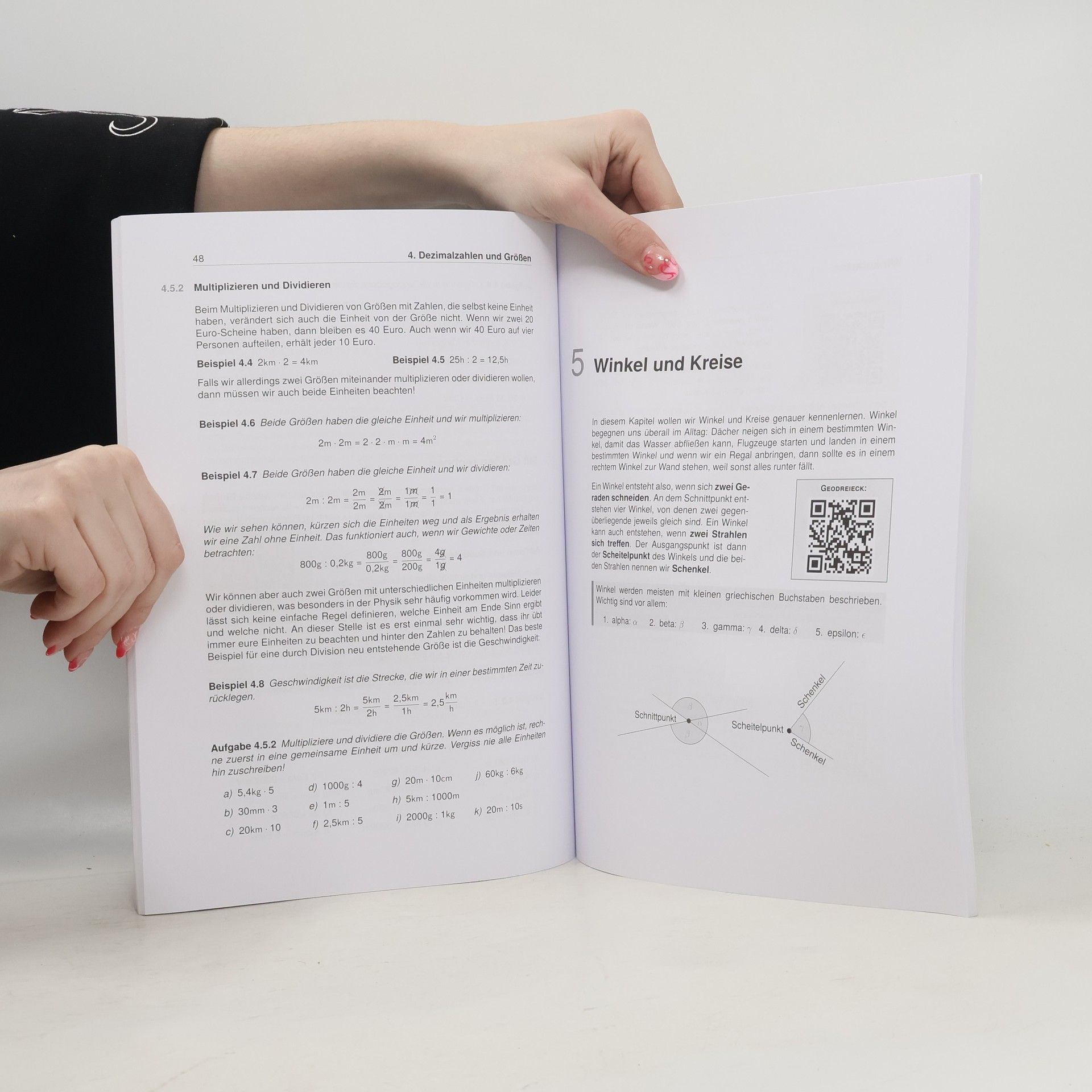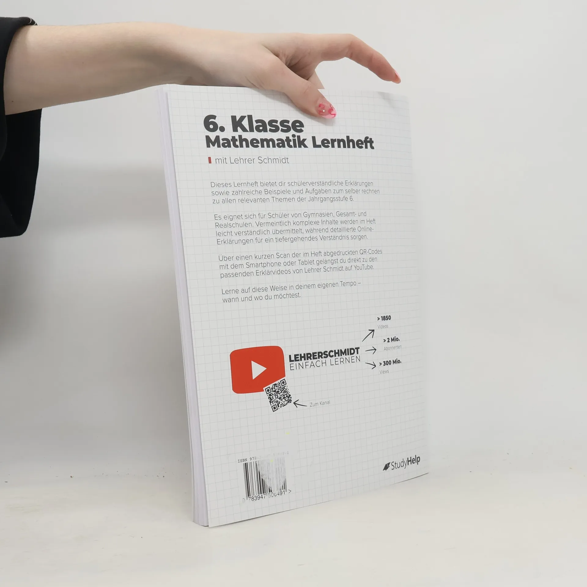 Unser Lernheft hilft dir mit Lernvideos von Lehrer Schmidt, auch in Zeiten von Home-Schooling, nicht den Überblick zu verlieren! 96 Seiten anschauliche Erklärungen 54 Lernvideos von Lehrer Schmidt 63 Aufgaben inkl. Lösungen In diesem Lernheft für die Sekundarstufe I findest du Erklärungen, Beispiele, Aufgaben und Lösungen zu allen relevanten Themen der 6. Klasse für Gymnasien, Gesamt-, Haupt- und Realschulen. Vermeintlich komplizierte Zusammenhänge sind in einer für dich vollkommen verständlichen Sprache dargestellt. Außerdem findest du zu den Themen alle Formeln, Skizzen und was sonst noch notwendig ist, um den Sachverhalt zu verstehen. Als ergänzendes Lernmaterial stehen dir dank der QR-Codes im Heft themenbasierte Erklärvideos von Lehrer Schmidt sofort zur Verfügung. Scanne hierzu mit deinem Smartphone oder Tablet den QR-Code ab und sieh dir ein auf dein Kapitel zugeschnittenes Video an. Auf diese Weise kannst du dich optimal auf mathematische Inhalte vorbereiten und wichtige Themen wiederholen. Inhaltsverzeichnis Teilbarkeit und Vielfache Brüche Dezimalzahlen Dezimalzahlen und Größen Winkel und Kreise Symmetrie und Abbildungen Prozente und Zinsen Daten und Zufall Lösungen