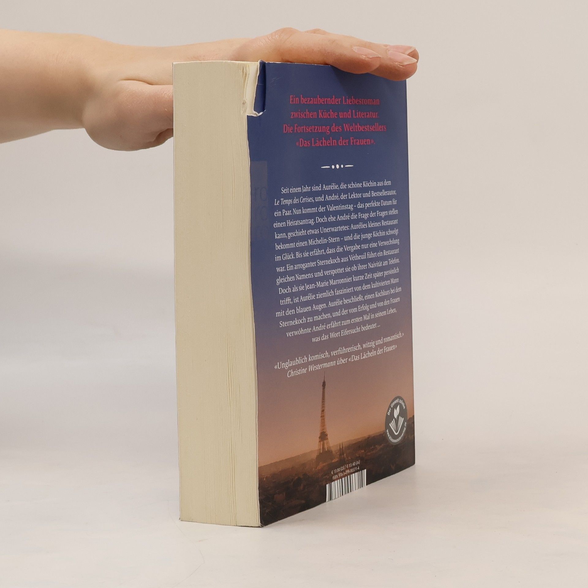 Ein bezaubernder Liebesroman zwischen Küche und Literatur. Die Fortsetzung des Weltbestsellers «Das Lächeln der Frauen». Seit einem Jahr sind Aurélie, die schöne Köchin aus dem Le Temps des Cerises, und André, der Lektor und Bestsellerautor, ein Paar. Nun kommt der Valentinstag – das perfekte Datum für einen Heiratsantrag. Doch ehe André die Frage der Fragen stellen kann, geschieht etwas Unerwartetes: Aurélies kleines Restaurant bekommt einen Michelin-Stern – und die junge Köchin schwelgt im Glück. Bis sie erfährt, dass die Vergabe nur eine Verwechslung war. Ein arroganter Sternekoch aus Vétheuil führt ein Restaurant gleichen Namens und verspottet sie ob ihrer Naivität am Telefon. Doch als sie Jean-Marie Marronnier kurze Zeit später persönlich trifft, ist Aurélie ziemlich fasziniert von dem kultivierten Mann mit den blauen Augen. Aurélie beschließt, einen Kochkurs bei dem Sternekoch zu machen, und der vom Erfolg und von den Frauen verwöhnte André erfährt zum ersten Mal in seinem Leben, was das Wort Eifersucht bedeutet …