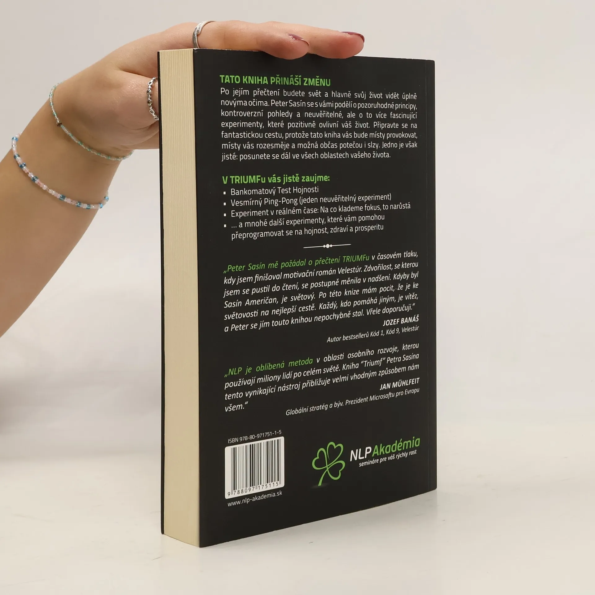 Tato kniha přináší změnu. Po jejím přečtení budete svět a hlavně svůj život vidět úplně novýma očima. Peter Sasín se s vámi podělí o pozoruhodné principy, kontroverzní pohledy a neuvěřitelné, ale o to více fascinující experimenty, které pozitivně ovlivní váš život. Připravte se na fantastickou cestu, protože tato kniha vás bude místy provokovat, místy vás rozesměje a možná občas potečou i slzy. Jedno je však jisté: posunete se dál ve všech oblastech vašeho života.