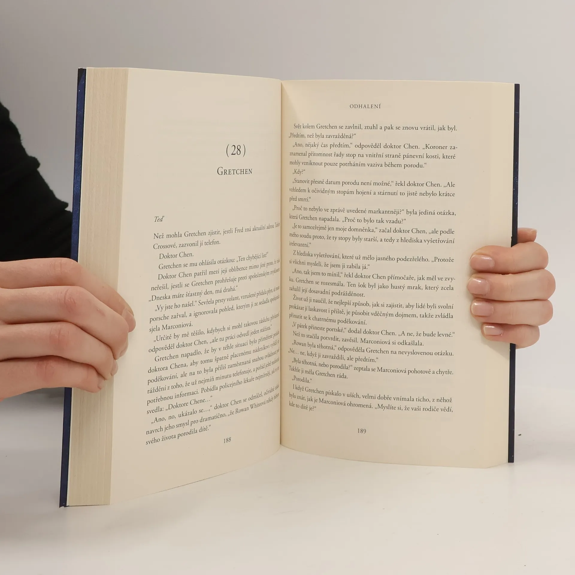 Působivý krimithriller Podezření nastolil otázky – a Odhalení přináší odpovědi. Psycholožka Gretchen Whiteová, konzultantka bostonské policie, žije od osmi let v přesvědčení, že zabila svou tetu. Našli ji s nožem v ruce nad tetiným bezvládným tělem, na všechny otázky odpovídala: Nepamatuju se. Spousta lidí včetně detektiva Patricka Shaughnessyho věří, že tahle sociopatka unikla trestu za vraždu. A že by se mohla znovu utrhnout ze řetězu. O třicet let později se Lauren Marconiová pokusí dokázat, že se její kolega Patrick mýlí. Pravdu o tom, co se té noci stalo, si však nikdo nedokázal ani představit