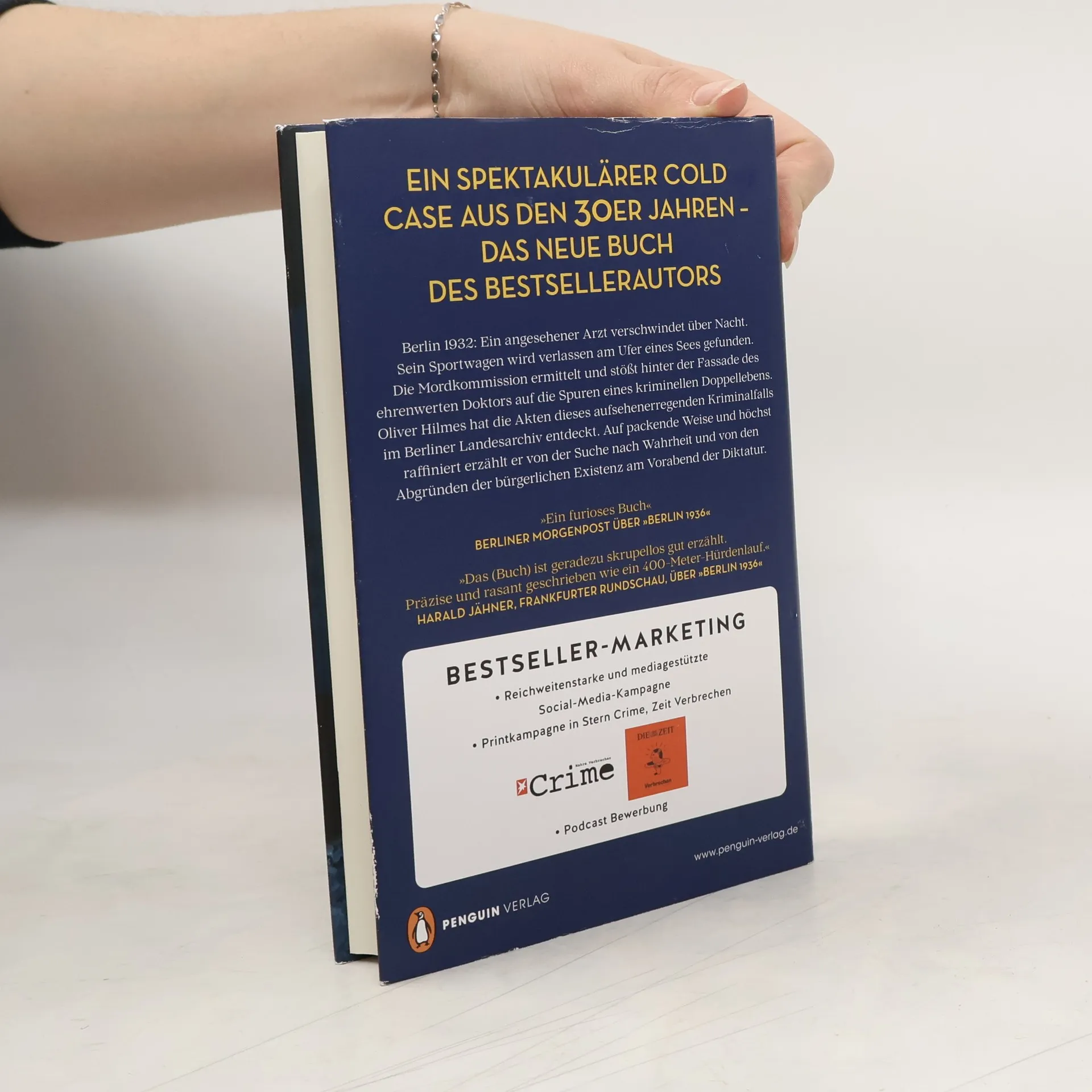 Ein spektakulärer Cold Case aus dem Berlin der 30er Jahre – das neue Buch des Bestsellerautors Ein angesehener Arzt verschwindet über Nacht. Sein Sportwagen wird verlassen am Ufer eines Sees bei Berlin gefunden. Die Mordkommission ermittelt und stößt hinter der sorgsam gepflegten Fassade des ehrenwerten Doktors auf die Spuren eines kriminellen Doppellebens, das von Berlin nach Barcelona führt. Oliver Hilmes hat die Akten dieses aufsehenerregenden Kriminalfalls aus der Spätzeit der Weimarer Republik im Berliner Landesarchiv entdeckt. Auf der Basis dieser Dokumente und angereichert mit fiktionalen Elementen, setzt er das mysteriöse Puzzle zusammen. Auf packende Weise und höchst raffiniert erzählt er von der Suche nach Wahrheit und von den Abgründen der bürgerlichen Existenz am Vorabend der Diktatur.