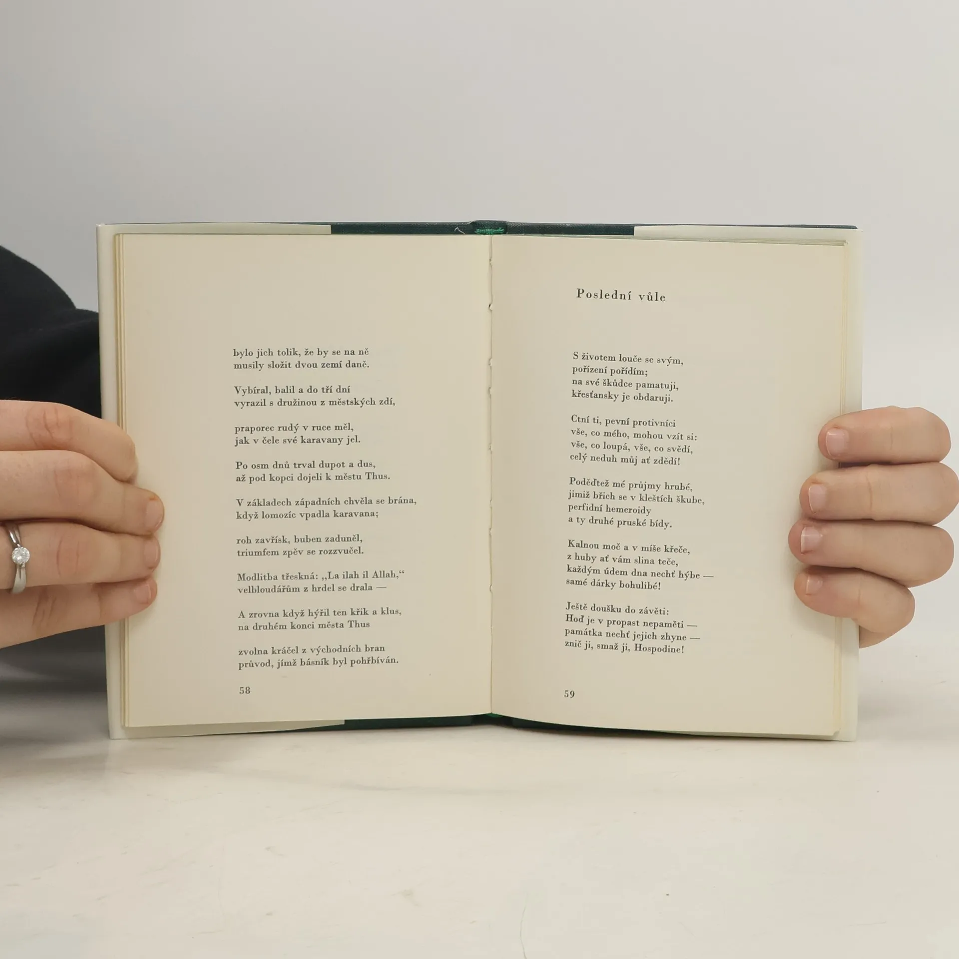 Výbor z veršů německého básníka, ústřední postavy německé literatury po smrti Goethově. Verše "o trpitelích a vyděděncích, o mrtvých a umírajících", které vybral překladatel před padesáti lety z různých oddílů posledních sbírek a z pozůstalosti, vznikaly v posledních letech Heinova života. Představují básníka připojujícího se k mohutnému podzemnímu hlasu nové společenské třídy a proklínajícího boha, krále i prolhanou vlast, autora toužícího po smyslových prožitcích života. Doslov napsal Miloš Pohorský. 22-071-75