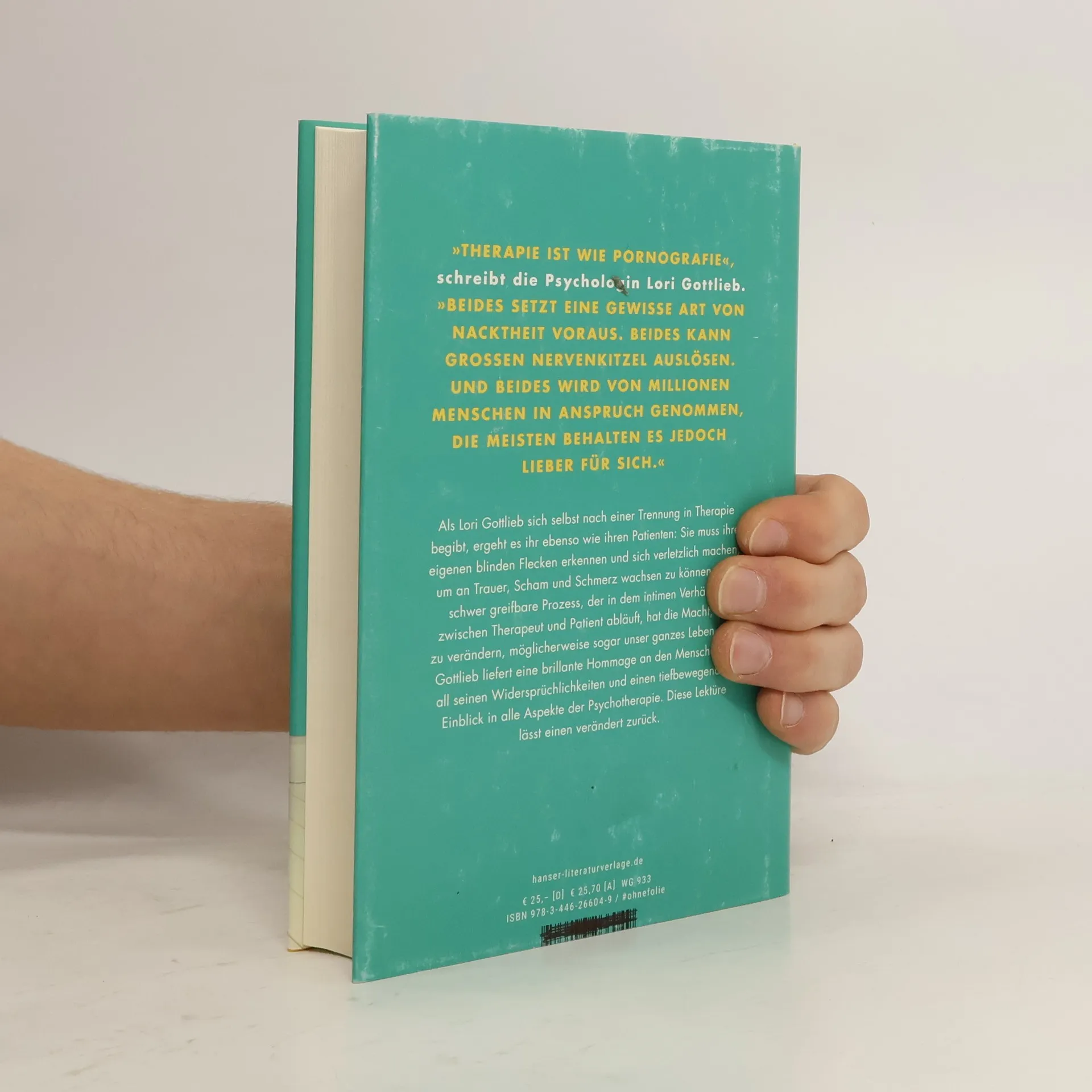 „Therapie ist wie Pornografie“, schreibt die Psychologin Lori Gottlieb. „Beides setzt eine gewisse Art von Nacktheit voraus. Beides kann großen Nervenkitzel auslösen. Und beides wird von Millionen Menschen in Anspruch genommen, die meisten behalten es jedoch lieber für sich.“ Als Lori Gottlieb sich selbst nach einer Trennung in Therapie begibt, ergeht es ihr ebenso wie ihren Patienten: Sie muss ihre eigenen blinden Flecken erkennen und sich verletzlich machen, um an Trauer, Scham und Schmerz wachsen zu können. Der schwer greifbare Prozess, der in dem intimen Verhältnis zwischen Therapeut und Patient abläuft, hat die Macht uns zu verändern, möglicherweise sogar unser ganzes Leben. Lori Gottlieb liefert eine brillante Hommage an den Menschen in all seinen Widersprüchlichkeiten und einen tiefbewegenden Einblick in alle Aspekte der Psychotherapie. Diese Lektüre lässt einen verändert zurück. „Ein Buch, das süchtig macht.“ (People)