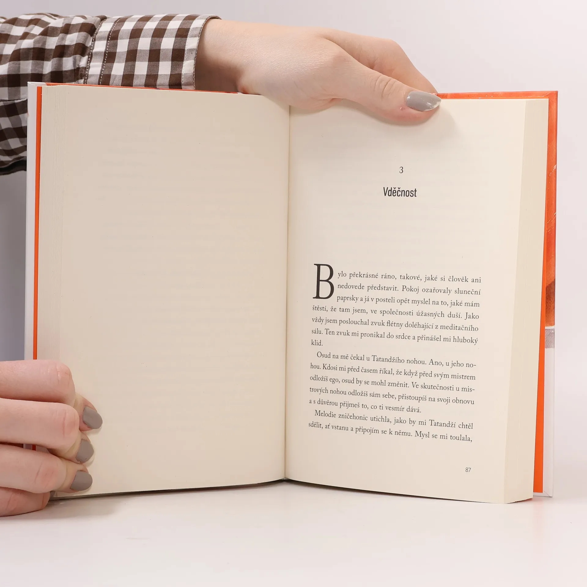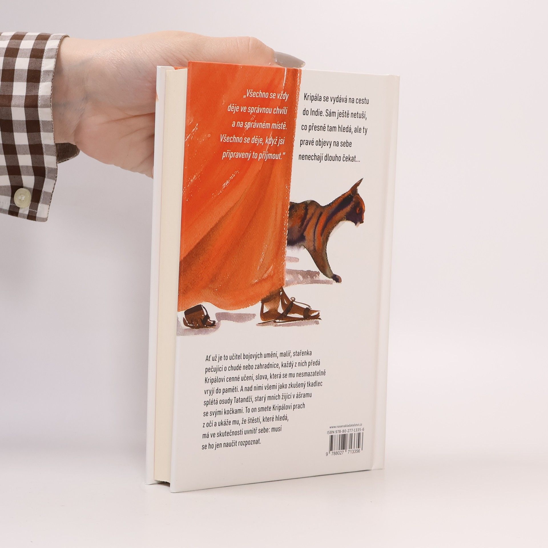 Co kdyby vám někdo řekl, že se podivnou hrou osudu ocitnete ve společnosti starého mnicha a jeho úžasných koček? Že podstoupíte iniciační cestu plnou setkání, díky nimž poznáte nesmírnou krásu svojí duše? A že než naleznete lásku, musíte ji nejprve objevit sami v sobě, a že na všechno, co jste se dosud naučili, lze pohlížet i z jiné perspektivy? Věřili byste tomu?Když se Kripála, hlavní hrdina tohoto příběhu, vydává na cestu, neví, co pro něj budoucnost chystá, zato ví, co chce nechat za sebou: práci, o kterou přišel, a nevydařený vztah. Jeho cílem je Indie, kde plánuje praktikovat jógu, a doufá, že tam nalezne ztracenou životní rovnováhu.Po příjezdu do Váránasí se ztratí v labyrintu uliček, ale zároveň začne znovu nacházet sebe sama. V tomto podmanivém posvátném městě potká jedinečné, zdánlivě prosté bytosti, avšak obdařené hlubokou moudrostí. Ať je to učitel bojových umění, malíř, stařenka pečující o chudé nebo zahradnice, každý z nich předá Kripálovi cenné učení, slova, která se mu nesmazatelně vryjí do paměti. A nad nimi všemi jako zkušený tkadlec splétá osudy Tatandží, starý mnich žijící v ášramu se svými kočkami. To on smete Kripálovi prach z očí a ukáže mu, že štěstí, které hledá, má ve skutečnosti uvnitř sebe: musí se ho jen naučit rozpoznat.