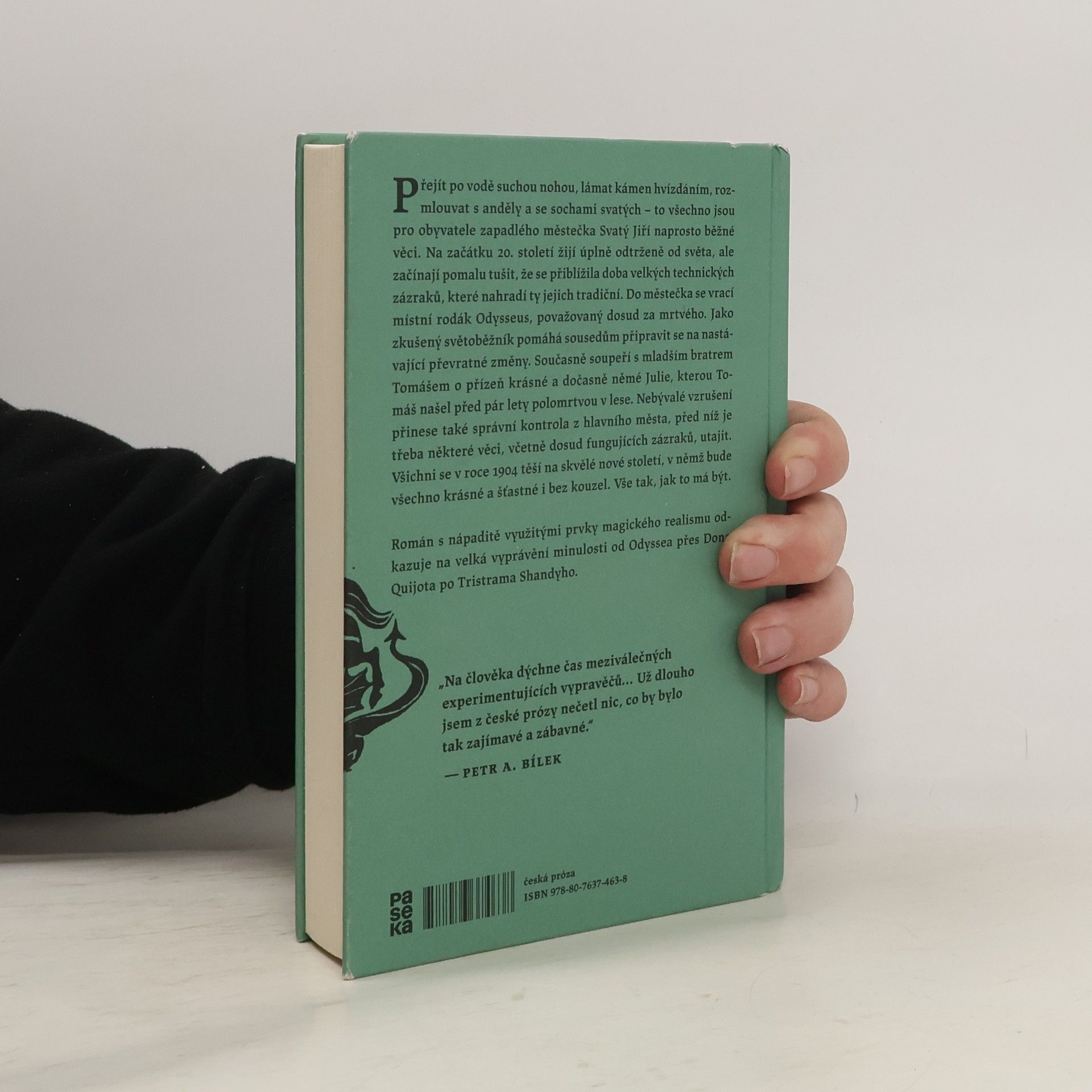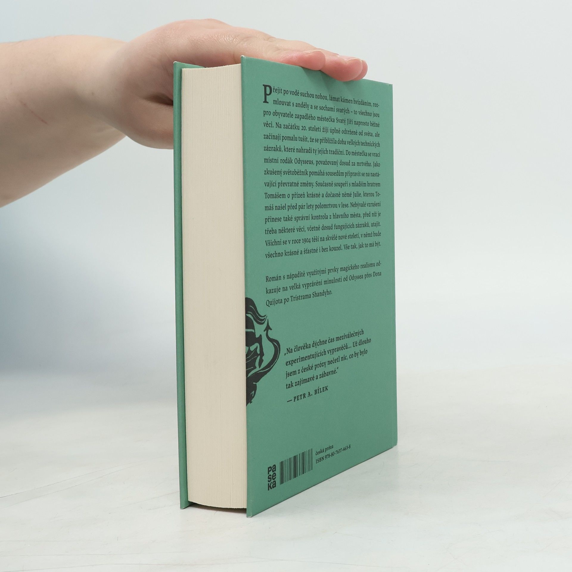 Přejít po vodě suchou nohou, lámat kámen hvízdáním, rozmlouvat s anděly a se sochami svatých – to všechno jsou pro obyvatele zapadlého městečka Svatý Jiří naprosto běžné věci. Na začátku 20. století žijí úplně odtrženě od světa, ale začínají pomalu tušit, že se přiblížila doba velkých technických zázraků, které nahradí ty jejich tradiční. Do městečka se vrací místní rodák Odysseus, považovaný dosud za mrtvého. Jako zkušený světoběžník pomáhá sousedům připravit se na nastávající převratné změny. Současně soupeří s mladším bratrem Tomášem o přízeň krásné a dočasně němé Julie, kterou Tomáš našel před pár lety polomrtvou v lese. Nebývalé vzrušení přinese také správní kontrola z hlavního města, před níž je třeba některé věci, včetně dosud fungujících zázraků, utajit. Všichni se v roce 1904 těší na skvělé nové století, v němž bude všechno krásné a šťastné i bez kouzel. Vše tak, jak to má být. Román s nápaditě využitými prvky magického realismu odkazuje na velká vyprávění minulosti od Odyssea přes Dona Quijota po Tristrama Shandyho.