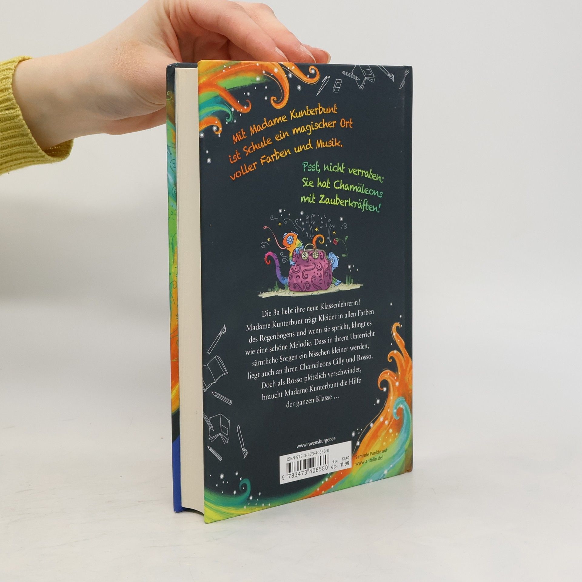Wenn Schule schöner ist als Ferien! Die Schüler der 3a lieben ihre neue Klassenlehrerin! Madame Kunterbunt trägt Kleider in allen Farben des Regenbogens, wenn sie spricht, klingt es wie eine schöne Melodie, und sämtliche Sorgen werden in ihrer Gegenwart ein bisschen kleiner. Das liegt auch an ihren Chamäleons Cilly und Rosso, die immer herrlich viel Blödsinn anstellen und auch ansonsten echt fantastisch sind. Denn ihre schimmernden Schuppen haben Zauberkräfte! Entdecke alle Abenteuer rund um Madame Kunterbunt: Band 1: Madame Kunterbunt und das Geheimnis der Mutmagie Band 2: Madame Kunterbunt und das Abenteuer der Wunderwünsche Band 3: Madame Kunterbunt und das Rätsel des Mitmachzaubers