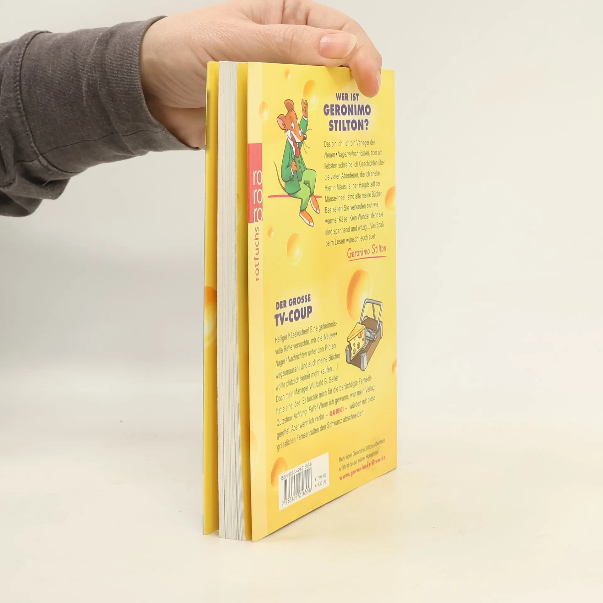 Heiliger Käsekuchen! Eine geheimnisvolle Ratte versuchte, mir die Neuen-Nager-Nachrichten unter den Pfoten wegzumausen! Und auch meine Bücher wollte plötzlich keiner mehr kaufen ... Doch mein Manager Willibald B. Seller hatte eine Idee: Er buchte mich für die berüchtigte Fernseh-Quizshow «Achtung, Falle!» Wenn ich gewann, war mein Verlag gerettet. Aber wenn ich verlor - QUIEK! -, würden mir diese grässlichen Fernsehratten den Schwanz abschneiden! Mehr über Geronimo Stiltons Abenteuer erfährst du auf seiner Homepage: www.geronimostilton.de