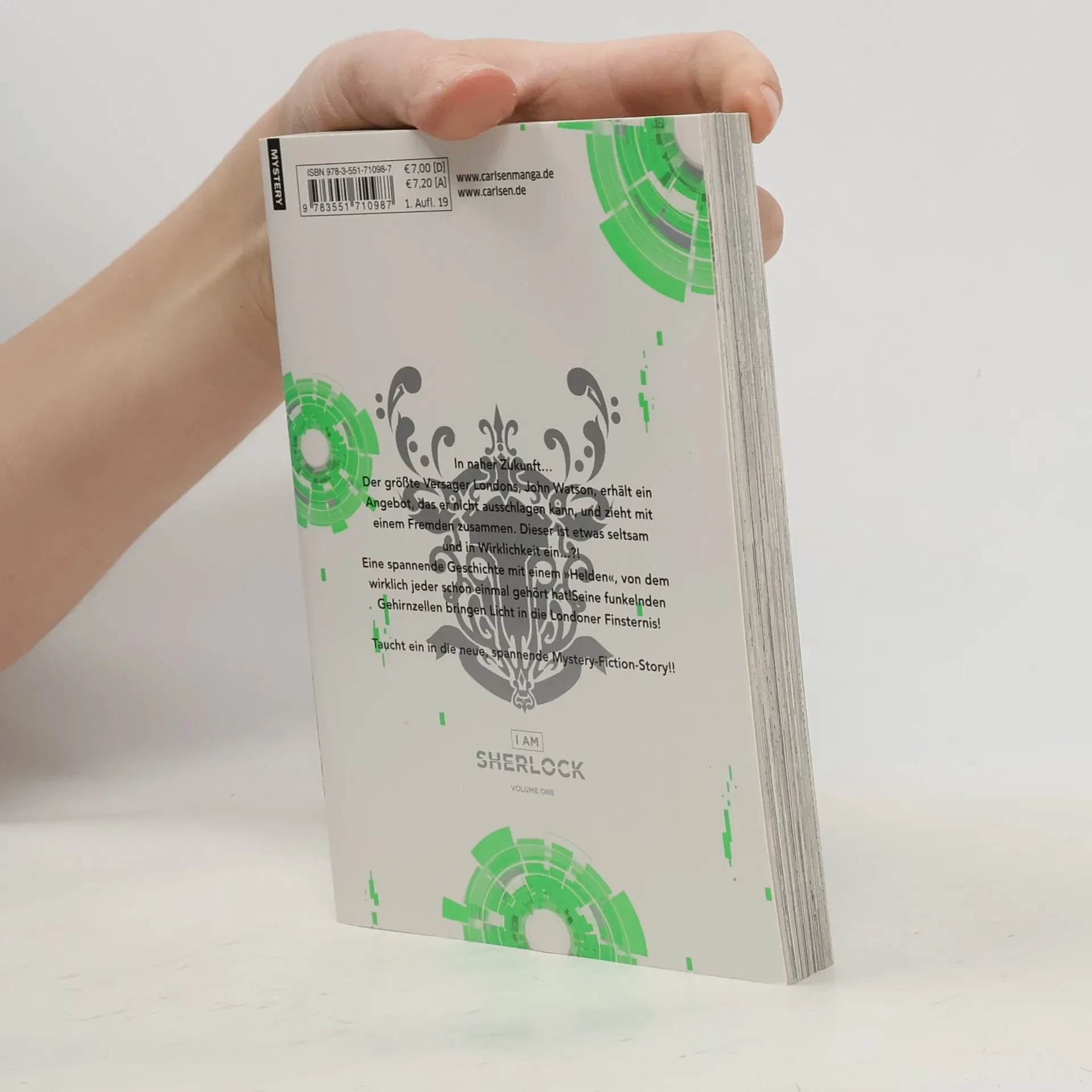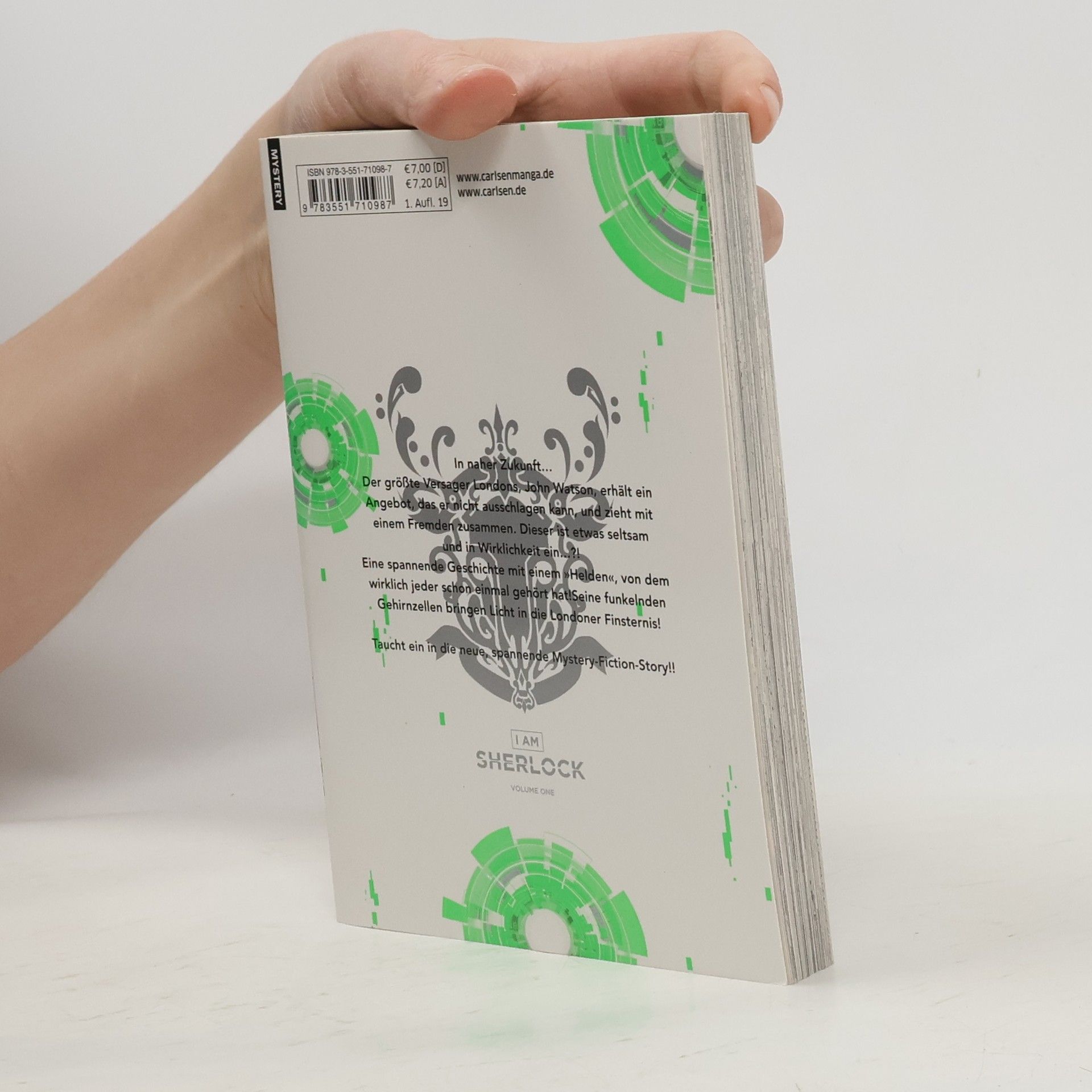 Android Sherlock klärt auf! In naher Zukunft… Der größte Versager Londons, John Watson, erhält ein Angebot, das er nicht ausschlagen kann, und zieht mit einem Fremden zusammen. Dieser ist etwas seltsam und in Wirklichkeit ein…?! Eine spannende Geschichte mit einem »Helden«, von dem wirklich jeder schon einmal gehört hat! Seine funkelnden Gehirnzellen bringen Licht in die Londoner Finsternis! Taucht ein in die neue, spannende Mystery-Fiction-Story!! Sherlock Holmes und John Watson gehören zu den wohl bekanntesten Ermittler-Tandems der Welt, deren Fälle bereits viele Male in andere Medien adaptiert wurden. Doch I AM SHERLOCK ist nicht irgendeine weitere Variante des bekannten Schemas: Kotaro Takata und Naomichi Io versetzen die Abenteuer des Superdetektivs und seines Sidekicks in ein London der näheren Zukunft. Auch diesmal kann Sherlock mit herausragenden Fähigkeiten brillieren - was aber daran liegt, dass er kein Mensch, sondern ein Android ist... Das klassische Setting bekommt in I AM SHERLOCK ein neues Gewand und die Storys einen Touch High-Tech-Feeling - heraus kommt eine actiongeladene Manga-Miniserie! Weitere Informationen: - Abgeschlossen in 4 Bänden - Empfohlen ab 11 Jahren - Klassisches Detektiv-Setting vermischt mit High Tech!