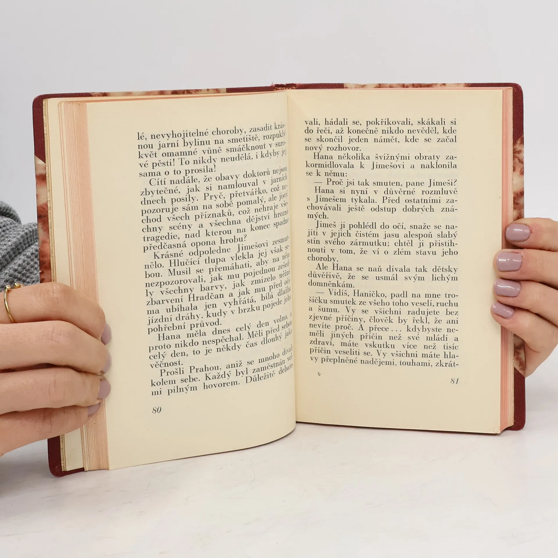 Tragický příběh mladé služky z pražské restaurace, která je pro svou krásu předmětem smyslné pozornosti hostí, starého chlípníka, hoteliéra i mladých bohémů, a která houževnatě hájí své panenství pro svého chorého milence, přičemž nakonec je zlomena a tragicky hyne. Druhé knižní vydání.