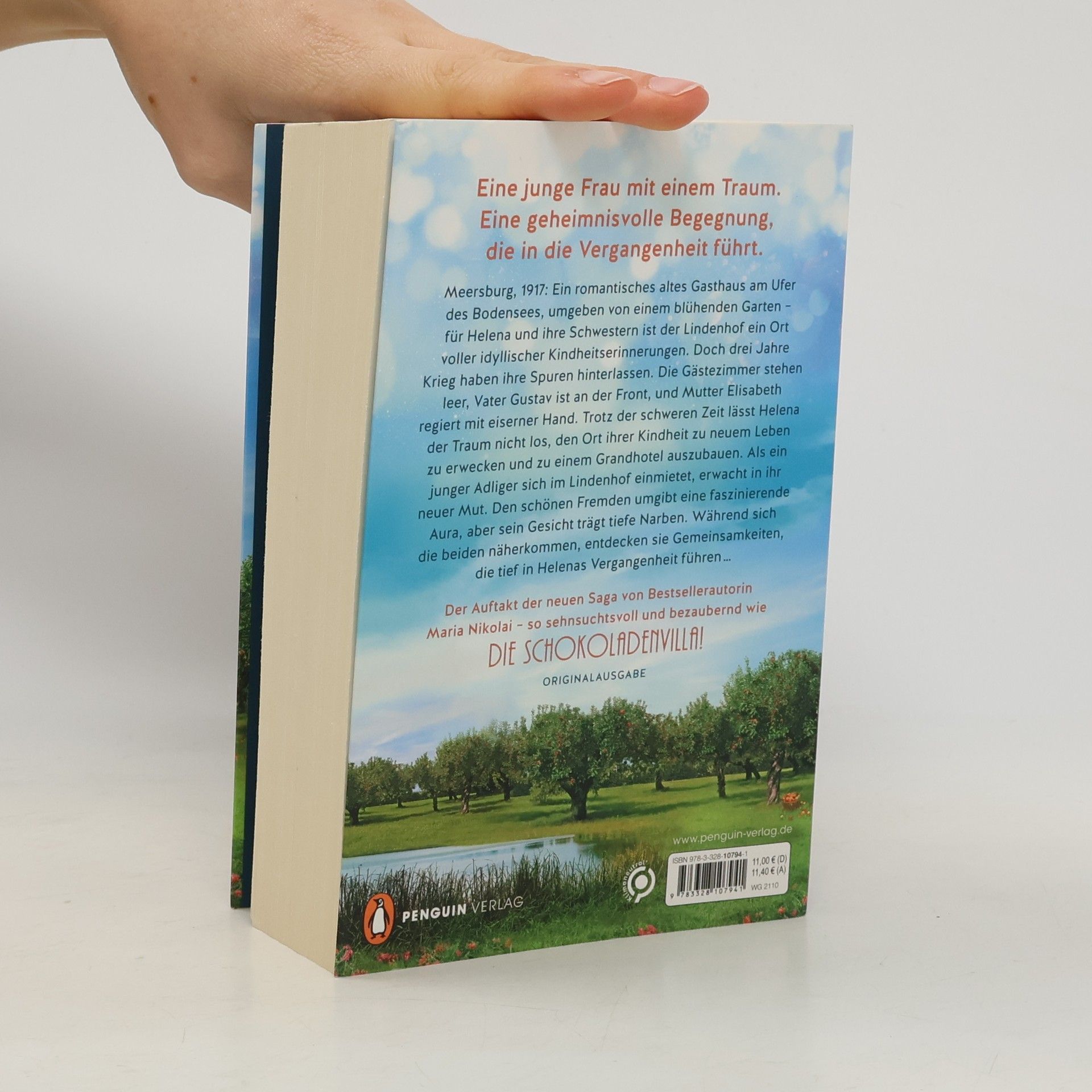 Nach »Die Schokoladenvilla«: Die neue historische Saga von Maria Nikolai! DREI SCHWESTERN DREI LEIDENSCHAFTEN EINE HEIMAT AM BODENSEE Meersburg, 1917: Ein romantisches altes Gasthaus am Ufer des Bodensees, umgeben von einem traumhaften Garten – für Helena Lindner und ihre Schwestern ist der Lindenhof ein Ort voller idyllischer Kindheitserinnerungen. Doch drei Jahre Krieg haben ihre Spuren hinterlassen. Die Gästezimmer stehen leer, Vater Gustav ist an der Front, und Mutter Elisabeth regiert mit eiserner Hand. Trotz der schweren Zeit lässt Helena der Traum nicht los, den Ort ihrer Kindheit zu neuem Leben zu erwecken und zu einem Grandhotel auszubauen. Als ein junger Adliger sich im Lindenhof einmietet, erwacht in ihr neuer Mut. Den schönen Fremden umgibt eine faszinierende Aura, aber sein Gesicht trägt tiefe Narben. Während sich die beiden näherkommen, entdecken sie Gemeinsamkeiten, die tief in Helenas Vergangenheit führen … Der Auftakt der neuen Saga von Bestsellerautorin Maria Nikolai – so genussvoll und bezaubernd wie »Die Schokoladenvilla«! In hochwertig veredelter Romance-Ausstattung, mit zwei leckeren Kuchenrezepten im Innenteil.