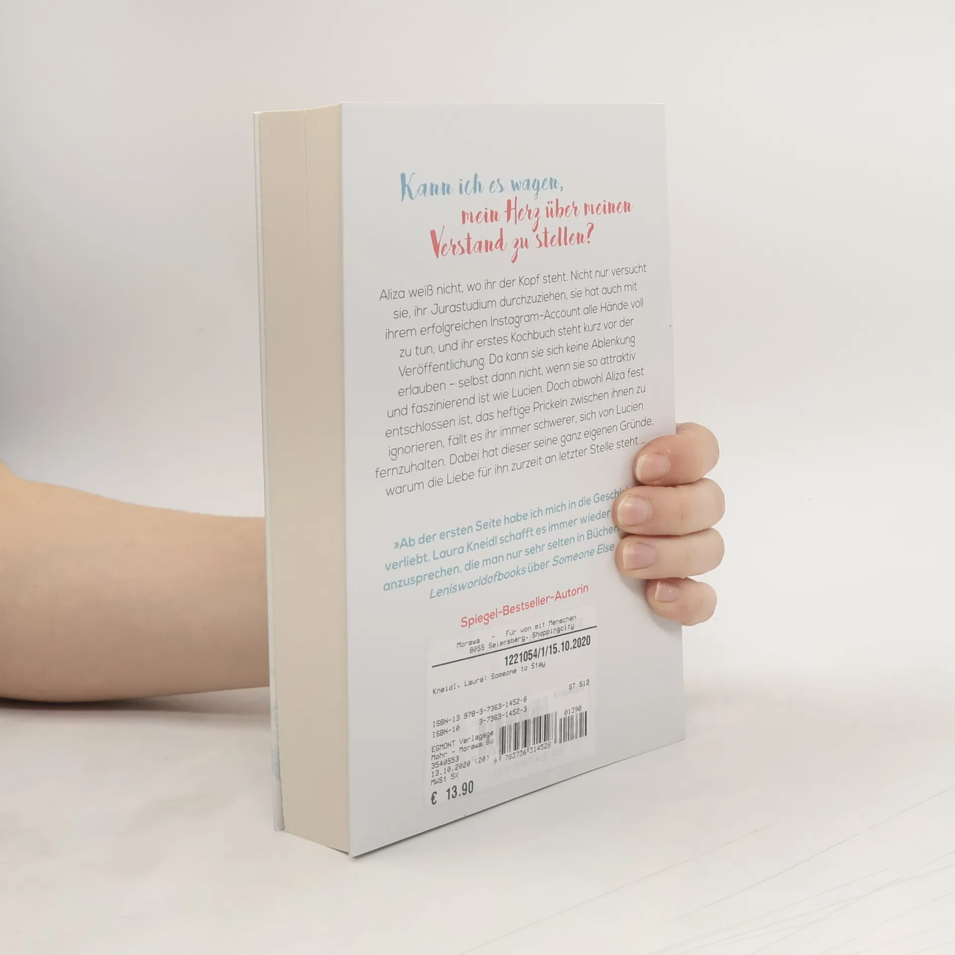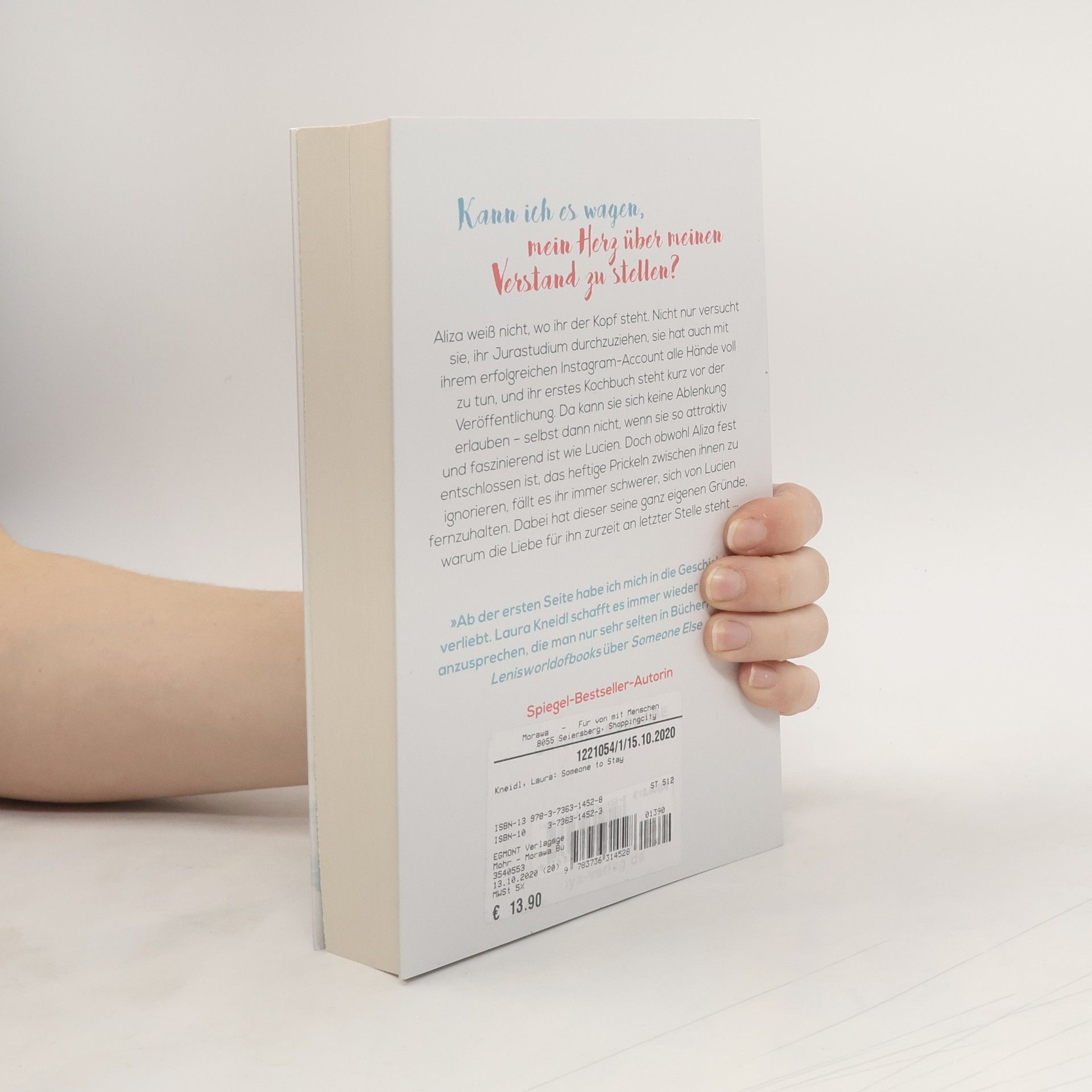Kann ich es wagen, mein Herz über meinen Verstand zu stellen? Aliza weiß nicht, wo ihr der Kopf steht. Nicht nur versucht sie, ihr Jurastudium durchzuziehen, sie hat auch mit ihrem erfolgreichen Instagram-Account alle Hände voll zu tun, und ihr erstes Kochbuch steht kurz vor der Veröffentlichung. Da kann sie sich keine Ablenkung erlauben - selbst dann nicht, wenn sie so attraktiv und faszinierend ist wie Lucien. Doch obwohl Aliza fest entschlossen ist, das heftige Prickeln zwischen ihnen zu ignorieren, fällt es ihr immer schwerer, sich von Lucien fernzuhalten. Dabei hat dieser seine ganz eigenen Gründe, warum die Liebe für ihn zurzeit an letzter Stelle steht ... „Ab der ersten Seite habe ich mich in die Geschichte verliebt. Laura Kneidl schafft es immer wieder Themen anzusprechen, die man nur sehr selten in Büchern liest.“ Lenisworldofbooks über Someone Else Die SOMEONE-Reihe von Platz-1-SPIEGEL-Bestseller-Autorin Laura Kneidl: 1. Someone New2. Someone Else3. Someone to Stay