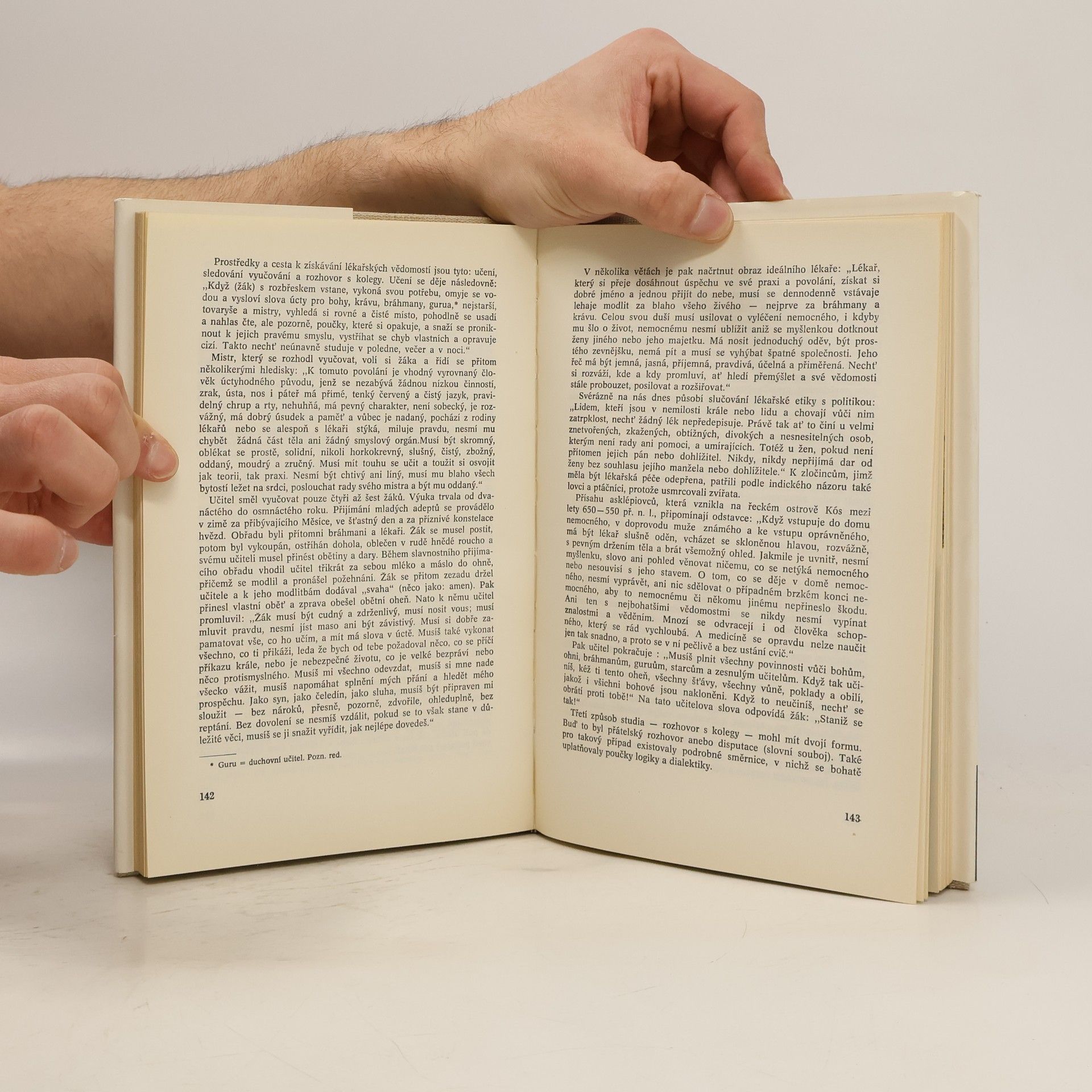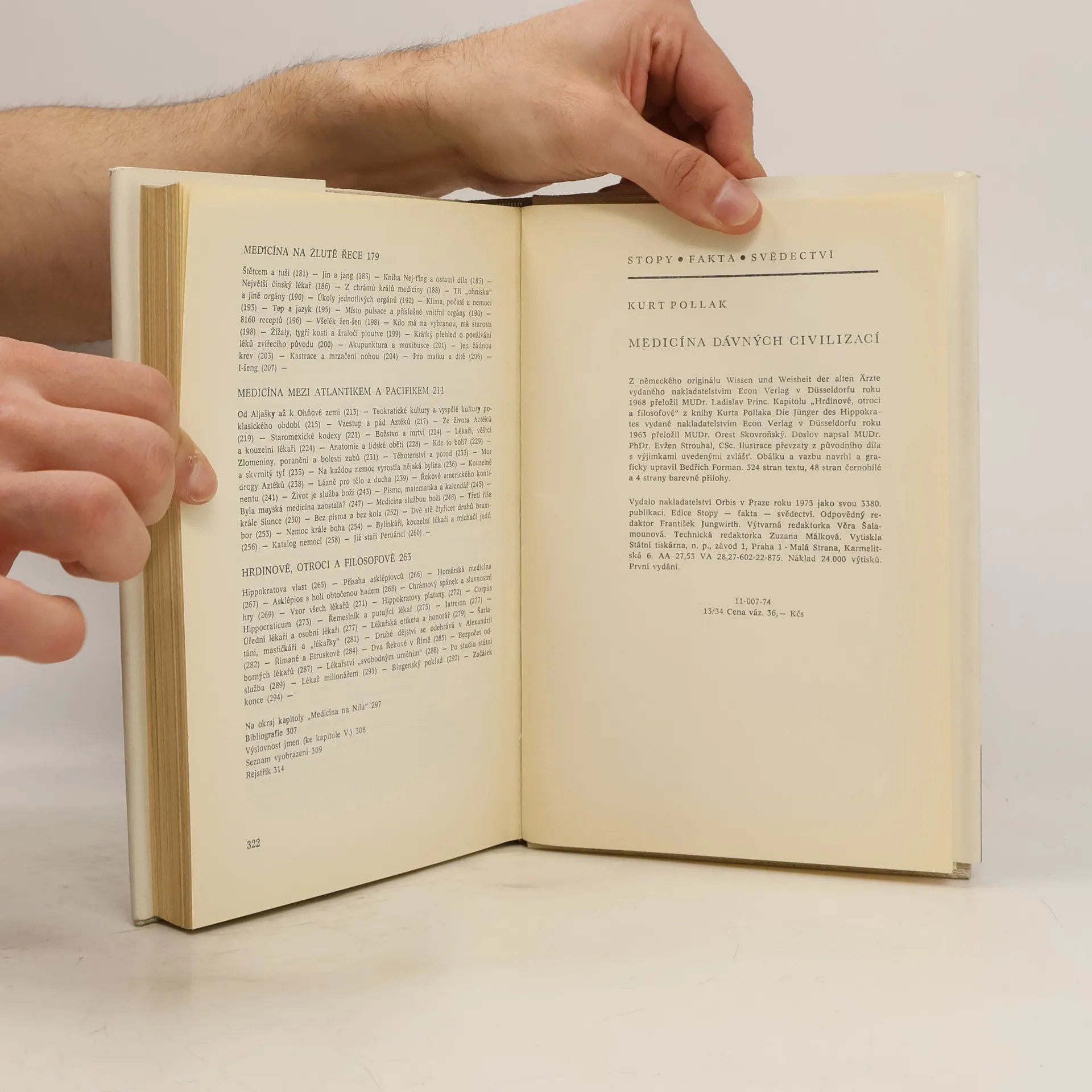 Kurt Pollak, sám vzděláním lékař, který se dlouhodobě zabýval dějinami medicíny, podává v šesti kapitolách náhled do počátků medicíny ve starověku: V Egyptě, v Mezopotámii, v Indii, v Číně, v Americe a v antickém Řecku a Římě. Ve svém výkladu se snaží vybírat to podstatné, abyukázal, že i když měly počátky medicíny řadu rysů společných, v některých ohledech filozofických východisek i společenského významu se jednotlivé kultury minulosti přece jen lišily. Kurt Pollak si zachoval zdravý odstup historika, takže text knihy je čtivý ale věcný. S úspěchem se vyhnul nástrahám snadného odsouzení postupů, které jsou ve světle dnešních znalostí absurdní, ale dokázal se vyhnout i jinému nebezpečí, totiž nekritickému přijímání zpráv z původních pramenů.
