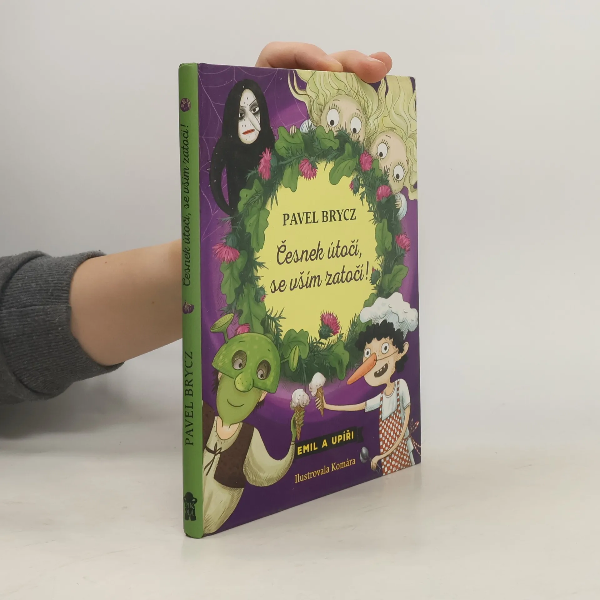 Malé upírky Ela a Hela začaly chodit do stejné školy jako Emil. Všichni žáci i učitelé jsou v ohrožení života, ale Emil ví své. Boj na život a na smrt začíná. Naštěstí má Emil za sebou partu neohrožených česnektariánů a společně se rozhodnou krizovou situaci ve škole vyřešit na vlastní pěst. Další příběh z úspěšné série o Emilovi a upírech je tady! Kniha je určena pro děti od 6 let.