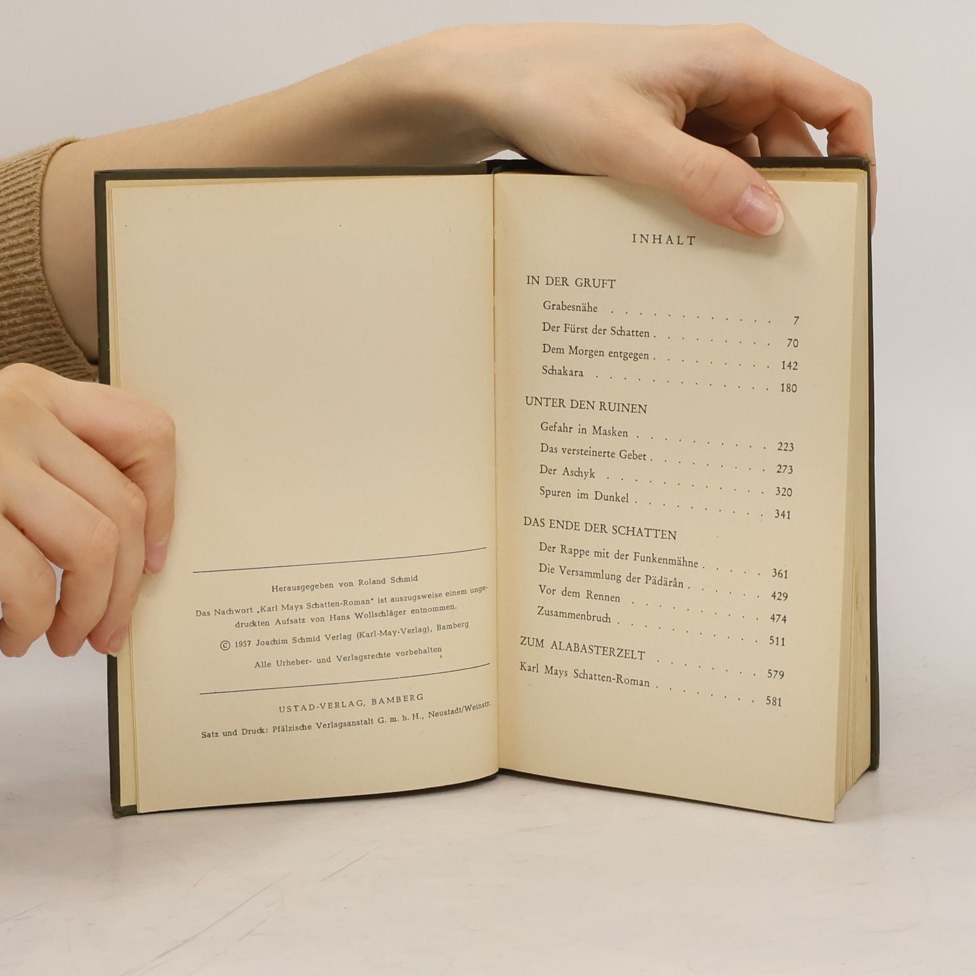 Ereignisse aus dem vorigen Band zeigen ihre tiefere Bedeutung; in einem langen Nachtgespräch halten der "Ustad" (der Meister der Dschamikun) und Kara Ben Nemsi innere Einkehr. Es ist Karl Mays eigene Persönlichkeit, die in diesem Spätwerk im ernsten Ringen mit sich selbst liegt.