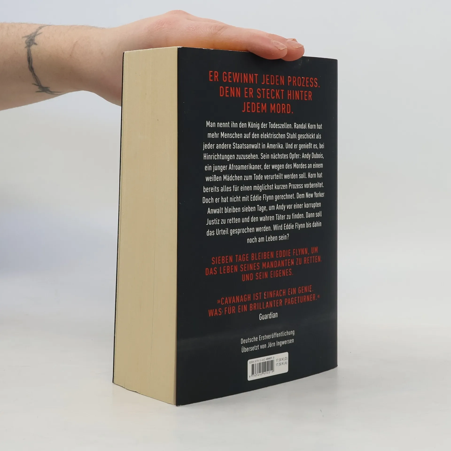 Er gewinnt jeden Prozess. Denn er steckt hinter jedem Mord. Man nennt ihn den König der Todeszellen. Randal Korn hat mehr Menschen auf den elektrischen Stuhl geschickt als jeder andere Staatsanwalt in Amerika. Und er genießt es, bei Hinrichtungen zuzusehen. Sein nächstes Opfer: Andy Dubois, ein junger Afroamerikaner, der wegen des Mordes an einem weißen Mädchen zum Tode verurteilt werden soll. Korn hat bereits alles für einen möglichst kurzen Prozess vorbereitet. Doch er hat nicht mit Eddie Flynn gerechnet. Dem New Yorker Anwalt bleiben sieben Tage, um Andy vor einer korrupten Justiz zu retten und den wahren Täter zu finden. Dann soll das Urteil gesprochen werden. Wird Eddie Flynn bis dahin noch am Leben sein? Sieben Tage bleiben Eddie Flynn, um das Leben seines Mandanten zu retten. Und sein eigenes ... »Nach den ersten Seiten hängen Sie rettungslos am Haken. ›Seven Days‹ treibt einem den Schweiß auf die Stirn, und die grandiosen Gerichtsszenen übertreffen sogar John Grisham.« The Times