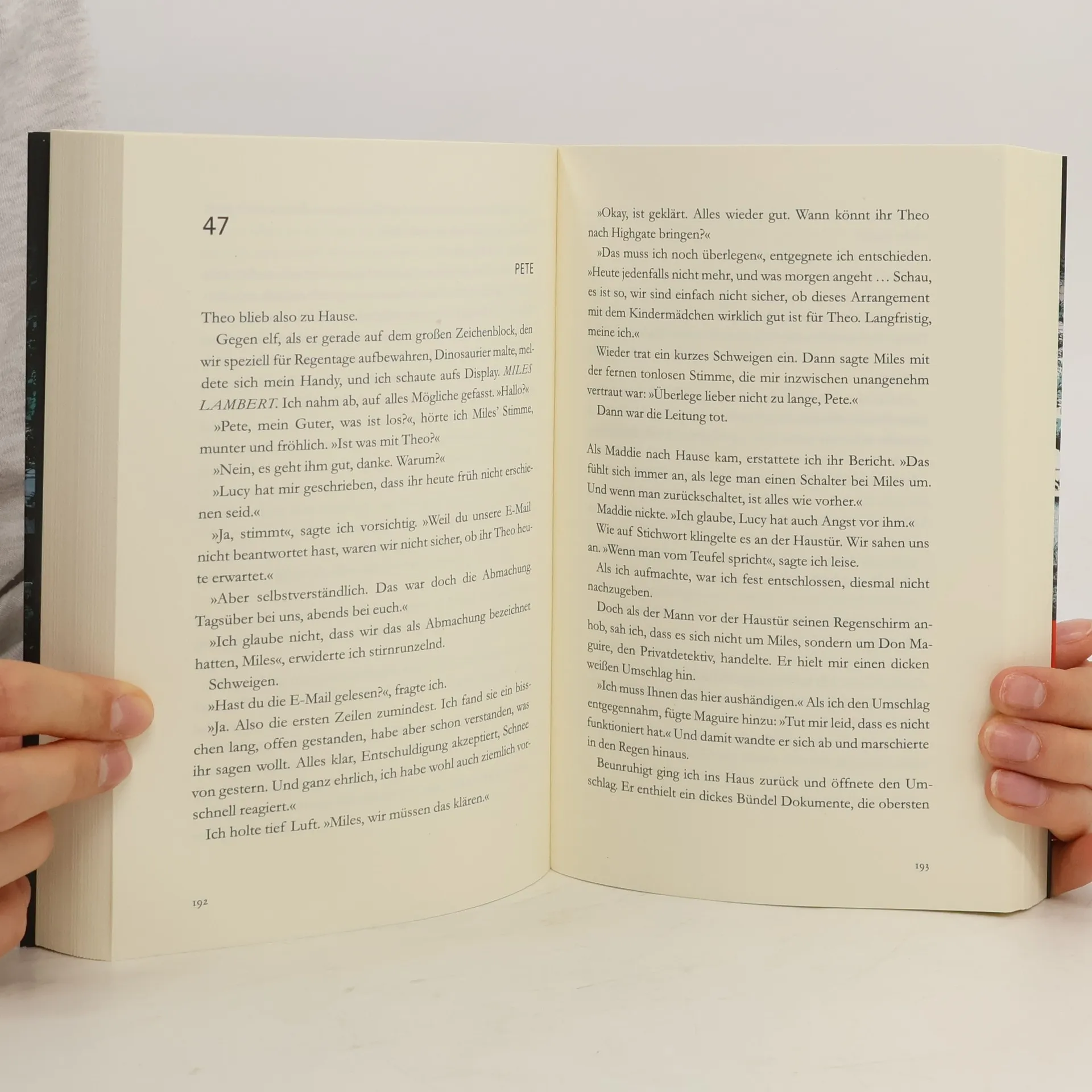 Sie haben dein Kind. Doch du hast ihres. Es ist der Albtraum aller Eltern: Als Pete Riley eines Morgens die Tür öffnet, steht vor ihm ein Mann, der seinem zweijährigen Sohn Theo wie aus dem Gesicht geschnitten ist. Was Miles Lambert ihm offenbart, bringt Petes Welt ins Wanken: Die Söhne der beiden Familien sind nach der Geburt vertauscht worden, Miles und seine Frau sind Theos biologische Eltern. Nach dem ersten Schock beschließen die beiden Paare, die Kinder nicht aus ihren Familien zu reißen. Sie wollen gemeinsam einen Weg finden, am Leben ihres jeweils leiblichen Sohnes teilzuhaben. Doch schnell stellt sich heraus, dass die Familien unterschiedlicher nicht sein könnten. Pete traut der heilen Welt im Hause Lambert immer weniger. Dann bringt eine Klage gegen das Krankenhaus, in dem der Fehler passiert ist, Verstörendes ans Tageslicht …